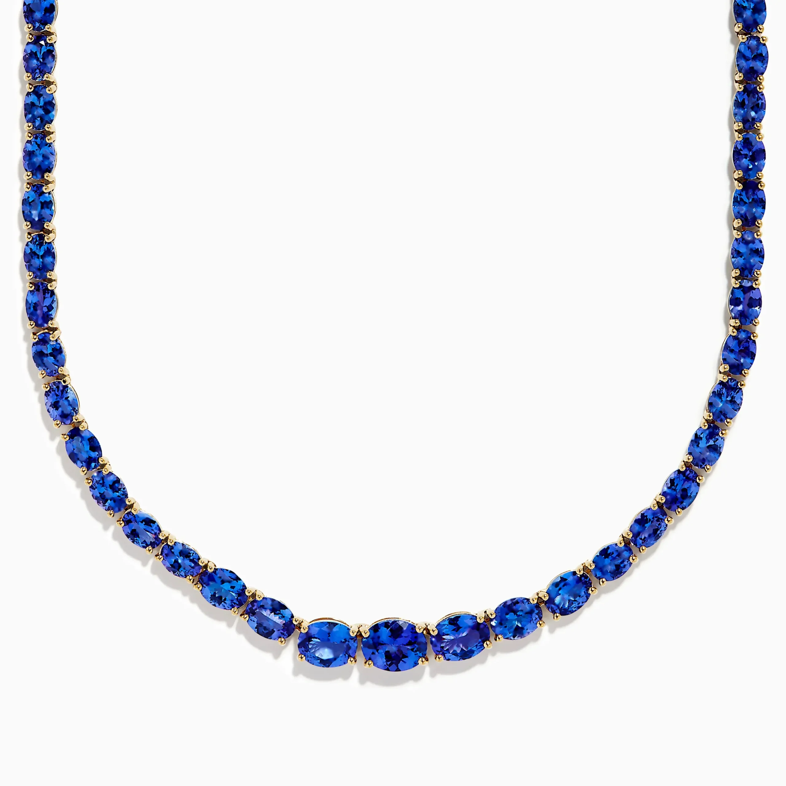 Metal:14K Gold Metal Color:YellowStone: Oval Tanzanite 52.58Nahla Siri 14K Yellow Gold Tanzanite Graduated Tennis Neckla…