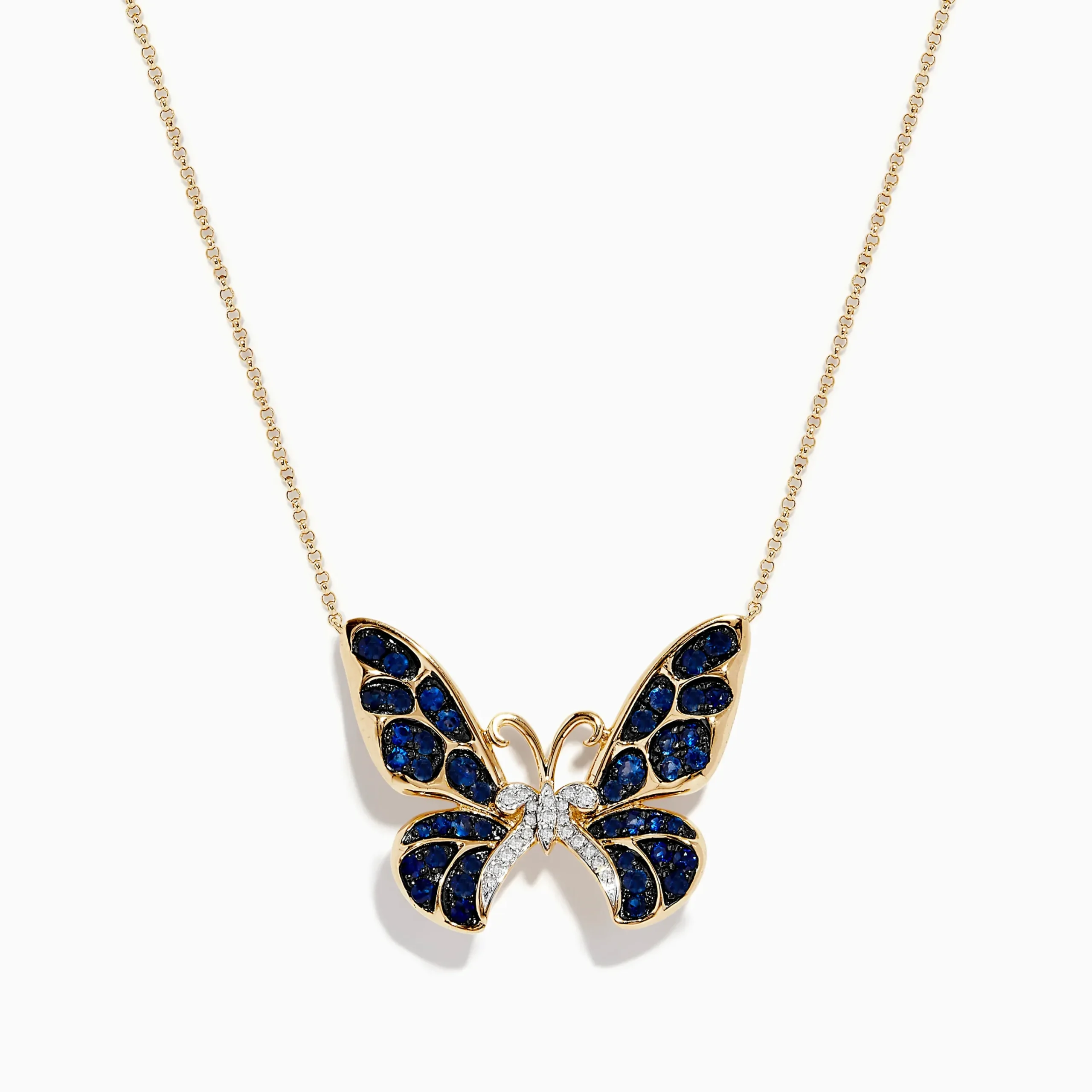 Effy Nature 14K Gold Blue Sapphire and Diamond Butterfly Necklace