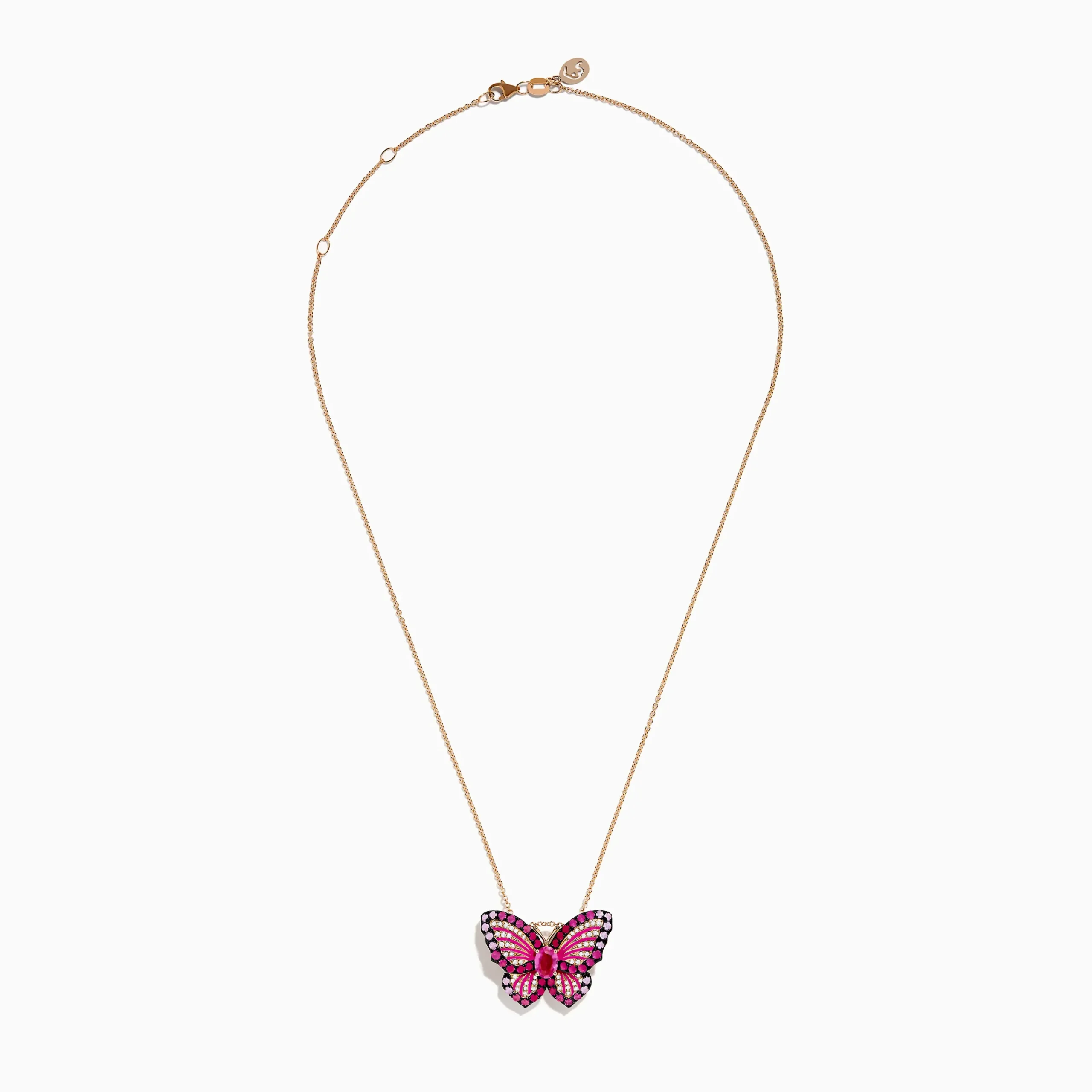 Nature 14K Rose Gold Pink Sapphire Ruby and Diamond Butterfly Pendant