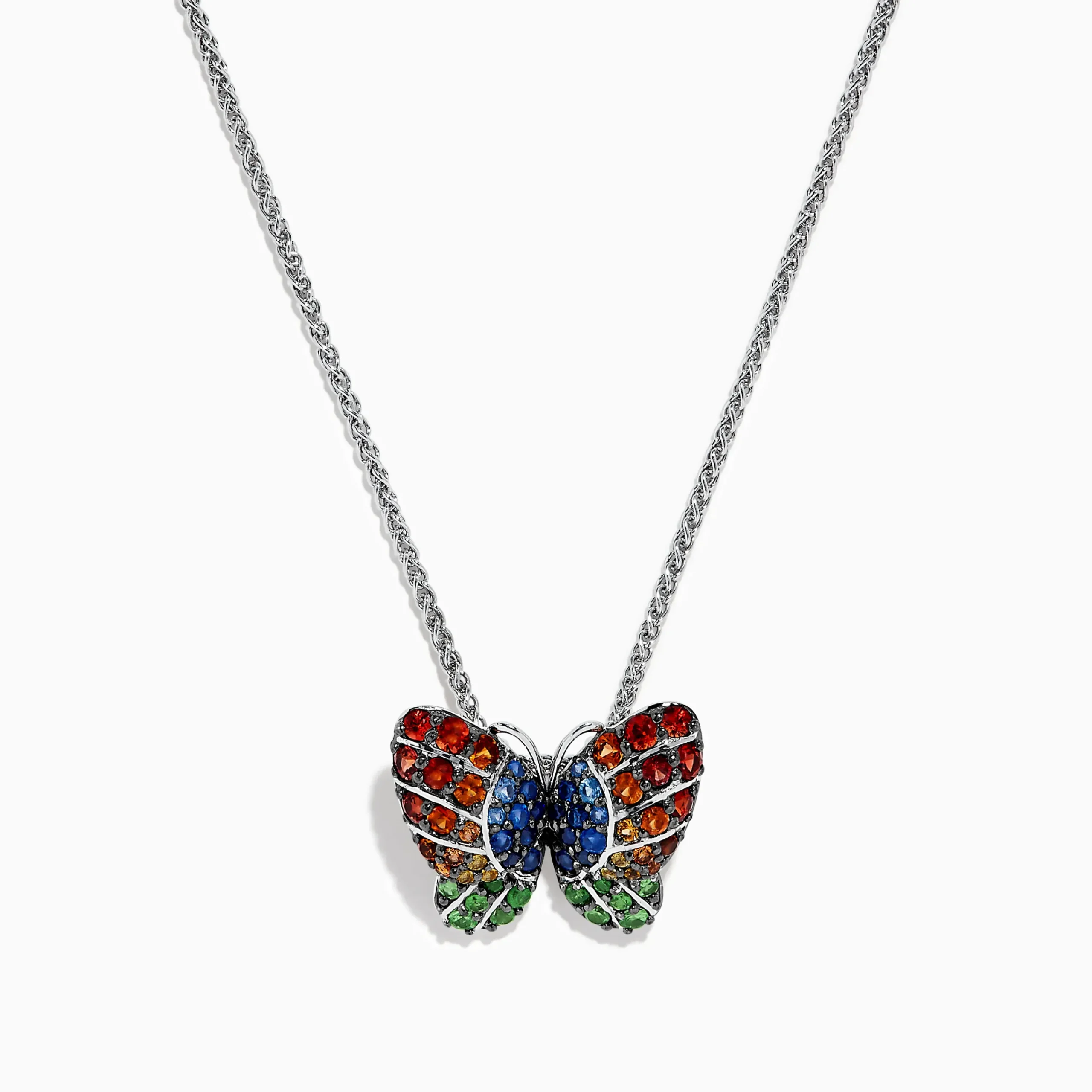 Metal:Sterling SilverStone: Round Multi Sapphire 1.7Effy Nature Sterling Silver Multi Sapphires Butterfly Pendant