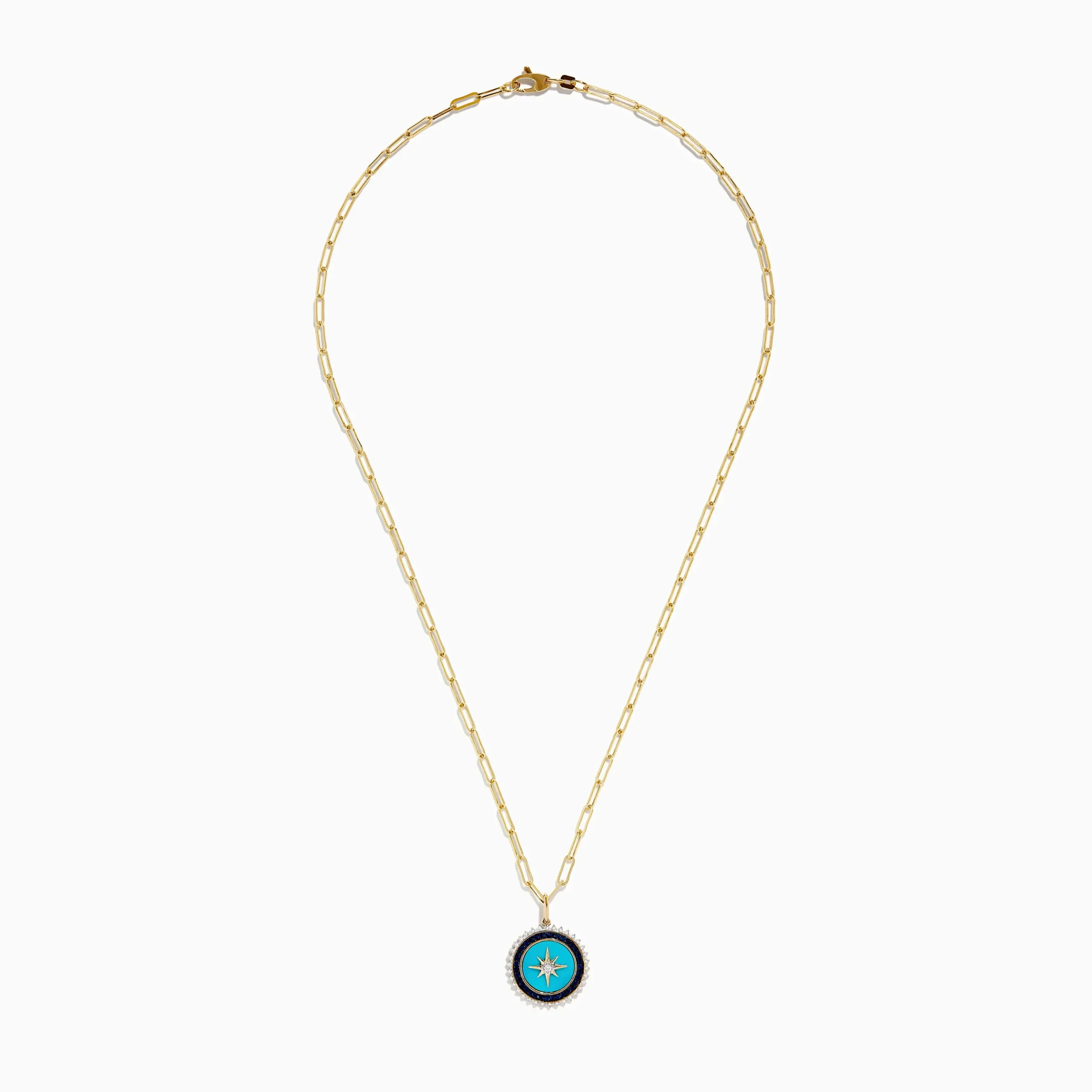 Effy Novelty 14K Gold Sapphire, Turquoise & Diamond Compass Pendant