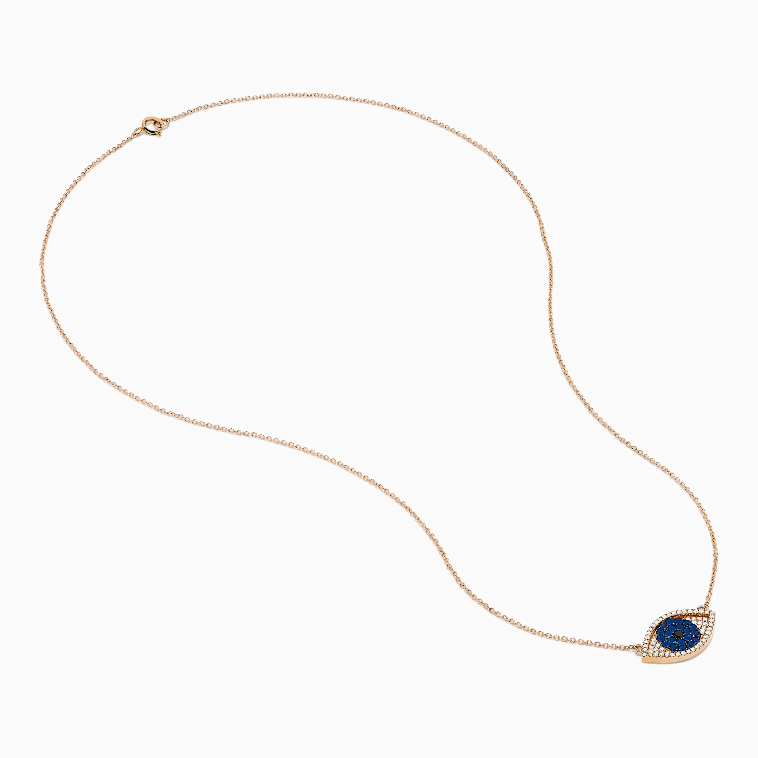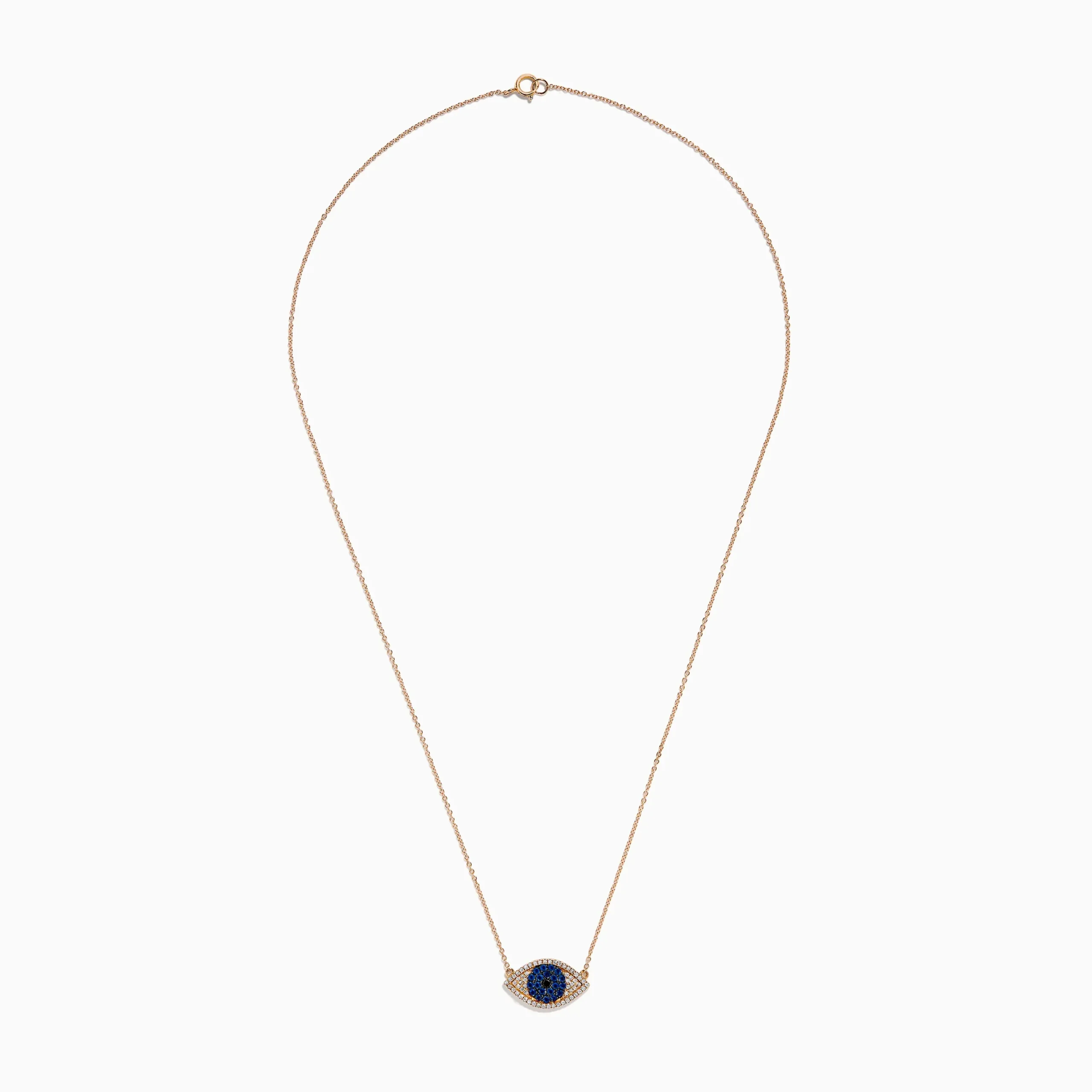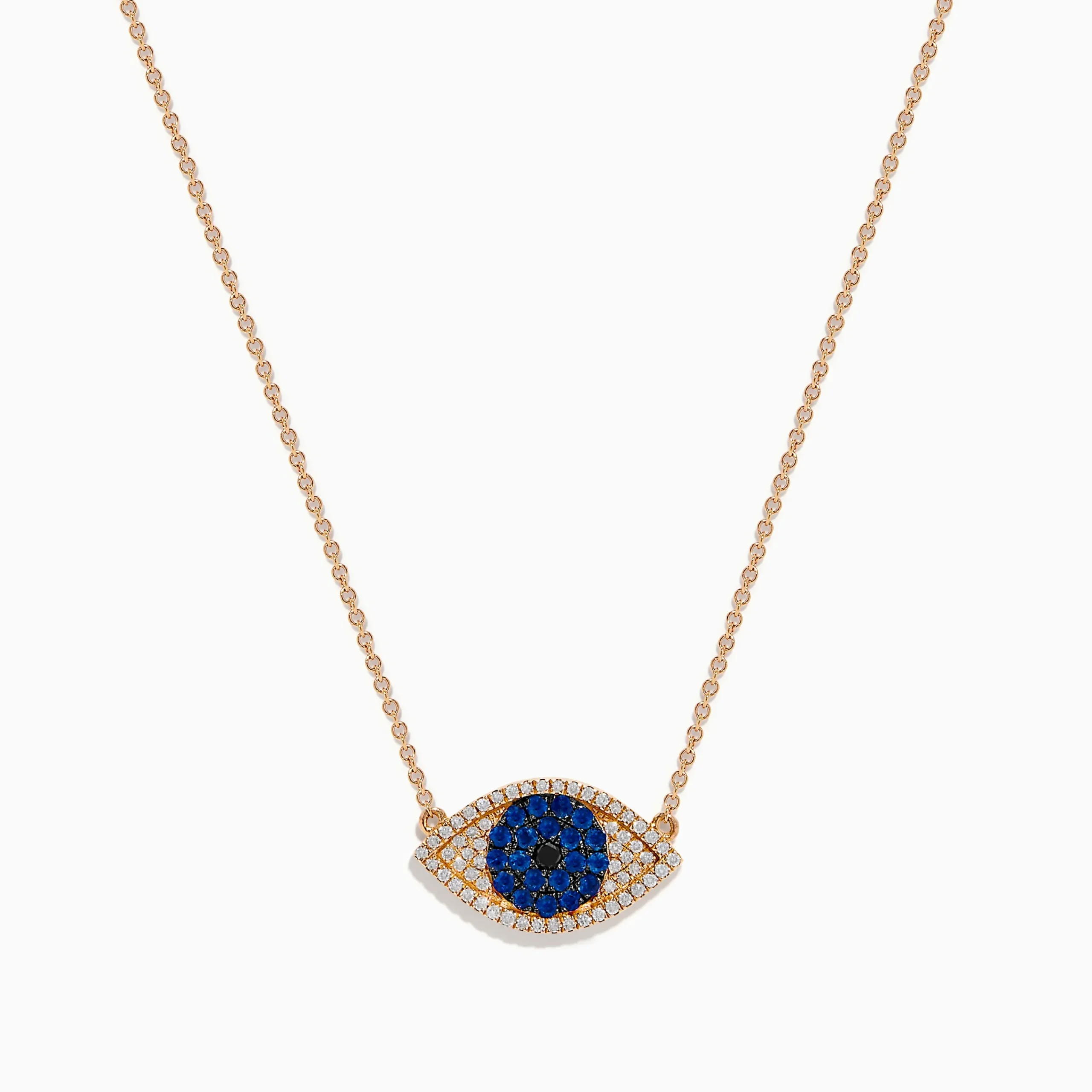 Novelty 14K Rose Gold Blue Sapphire and Diamond Evil Eye Necklace