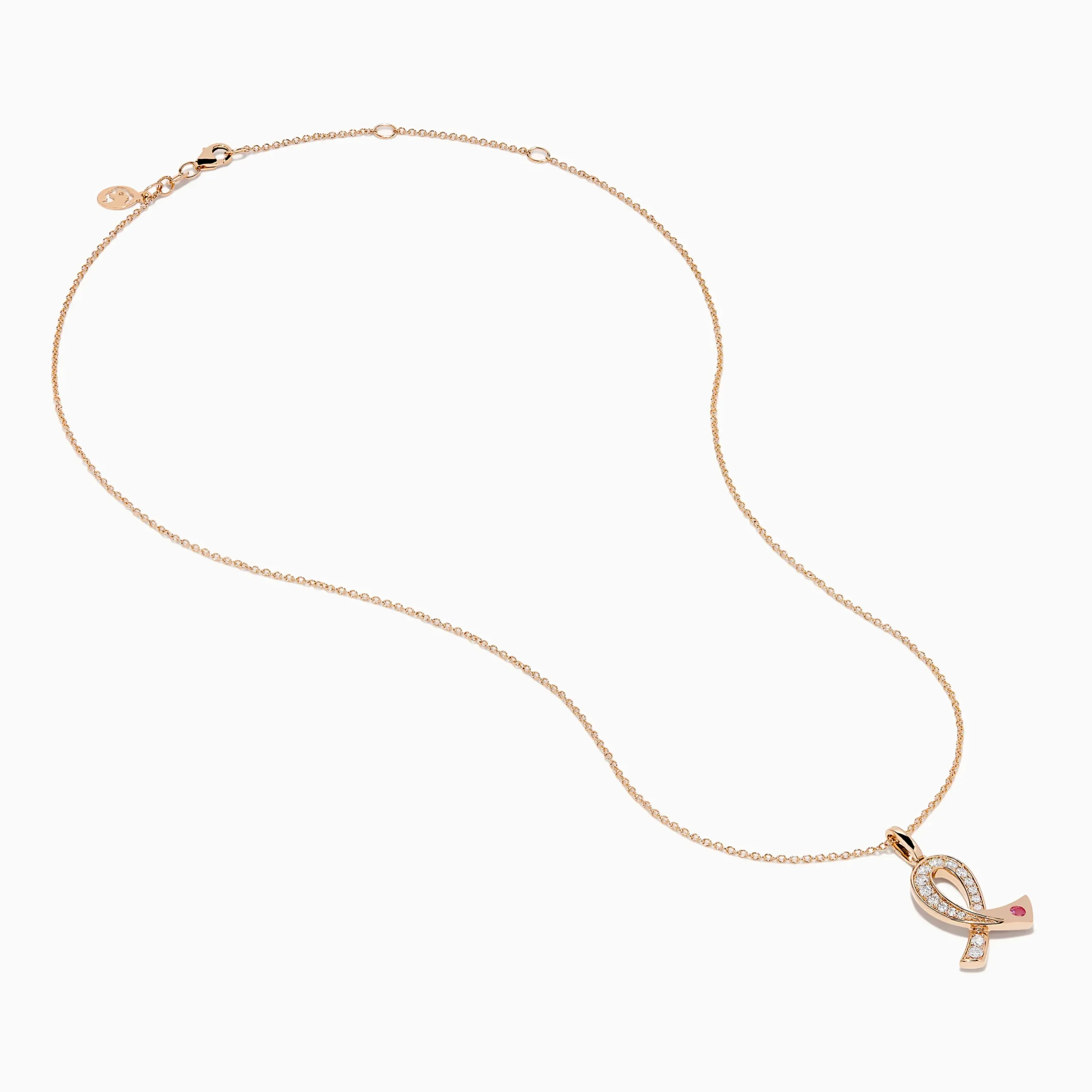 Novelty 14K Rose Gold Pink Sapphire & Diamond Pink Ribbon Pendant
