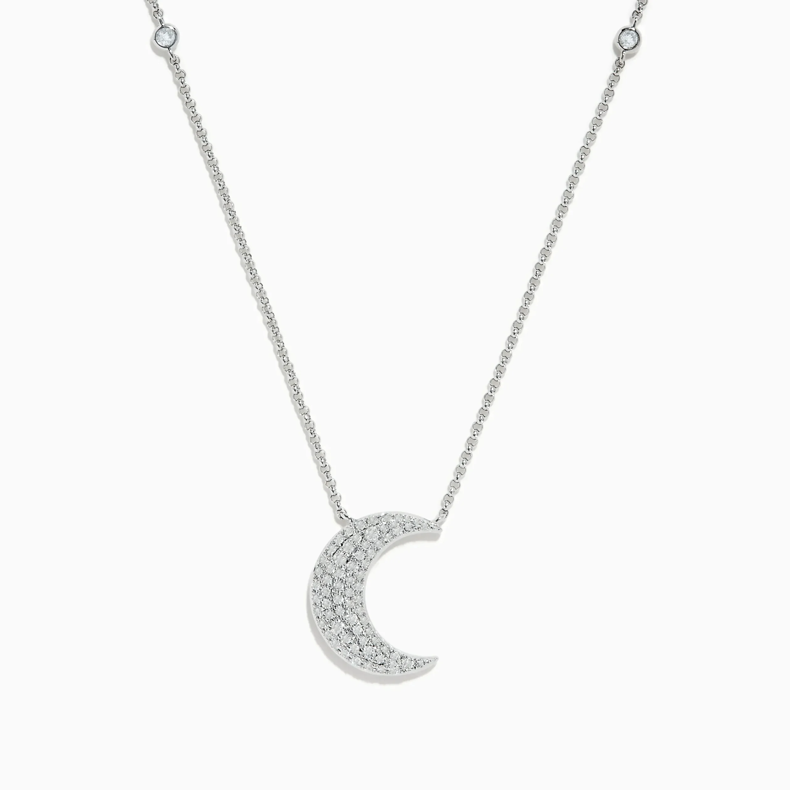 Novelty 14K White Gold Diamond Crescent Moon Necklace
