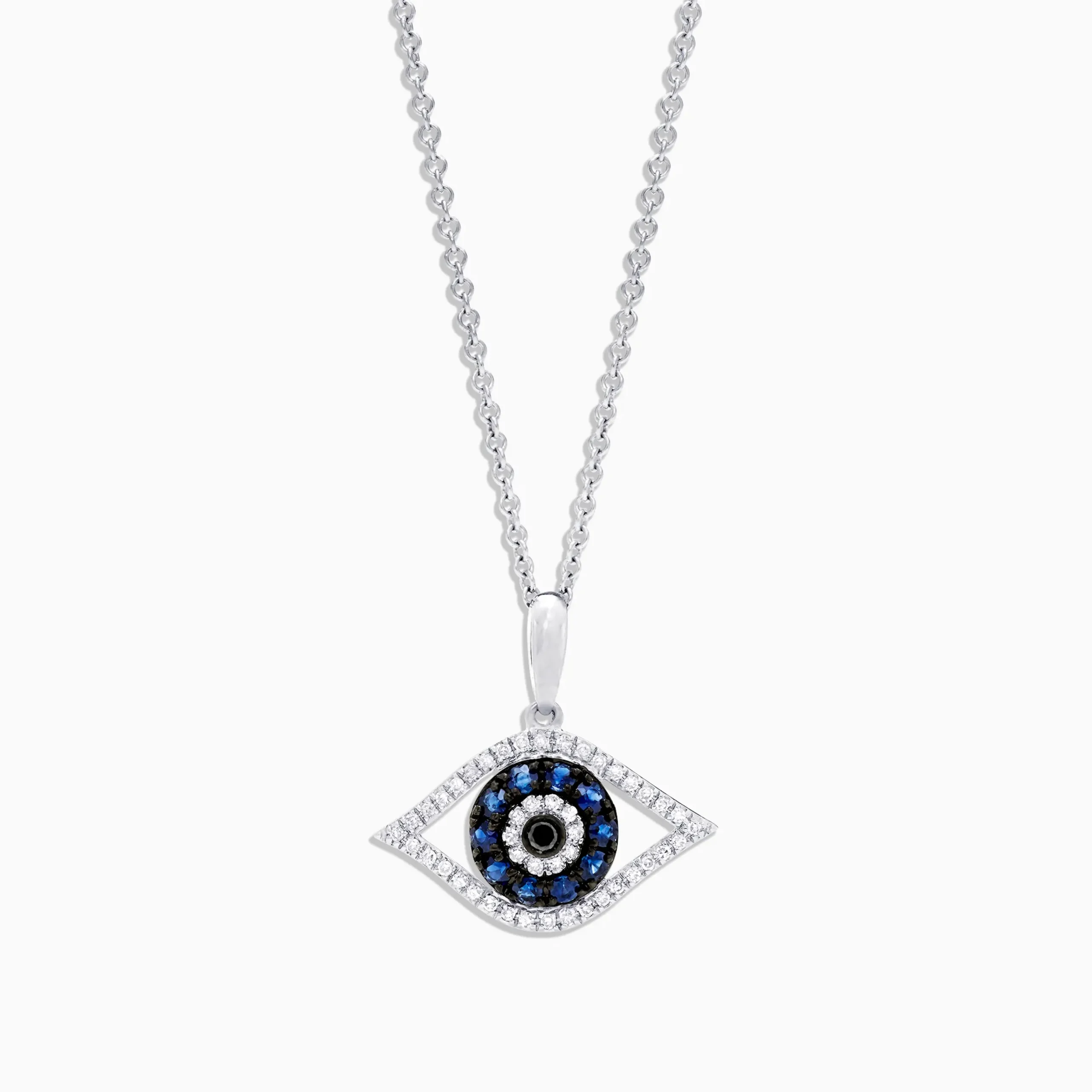 Effy Novelty 14K White Gold Sapphire & Diamond Evil Eye Pendant, 0.42 TCW