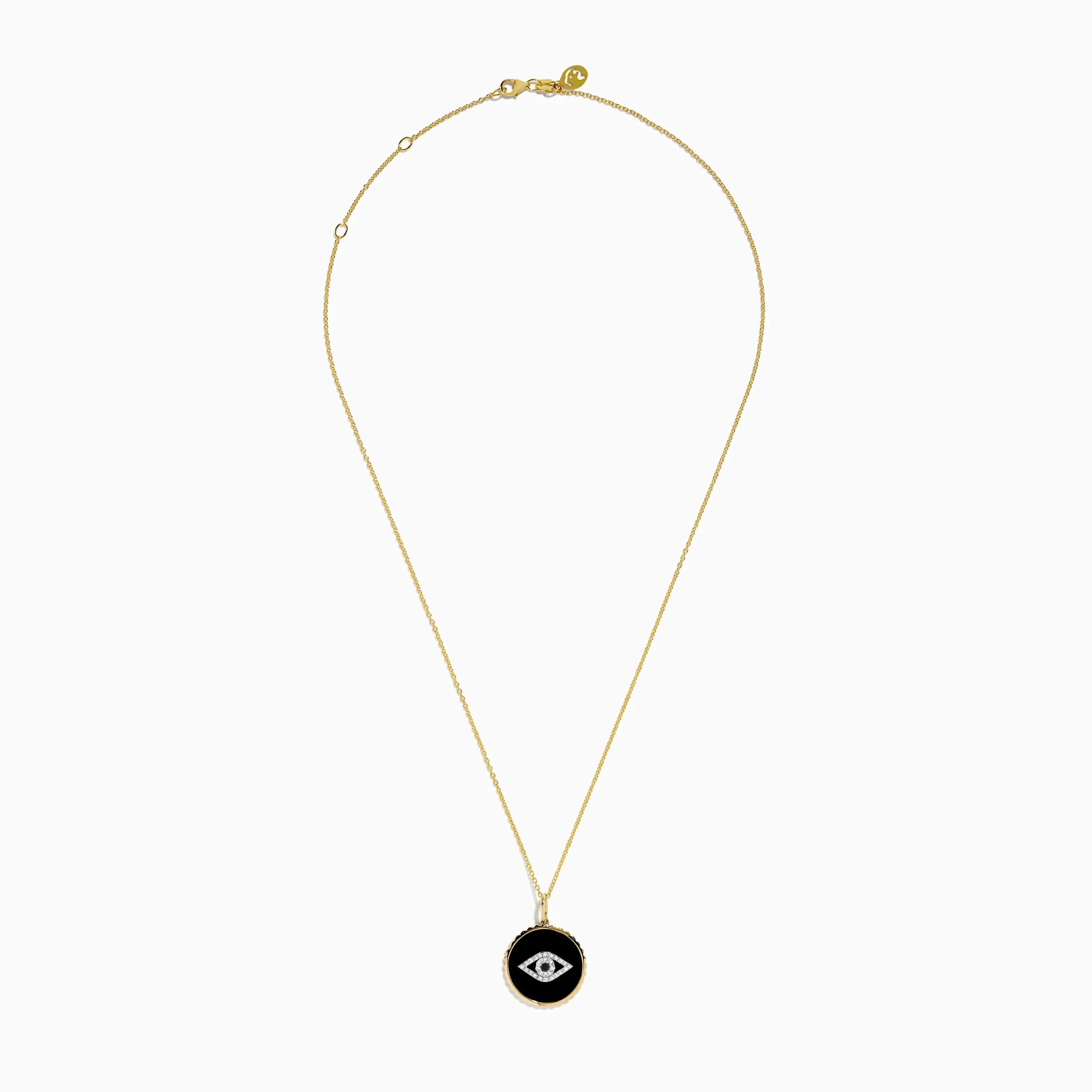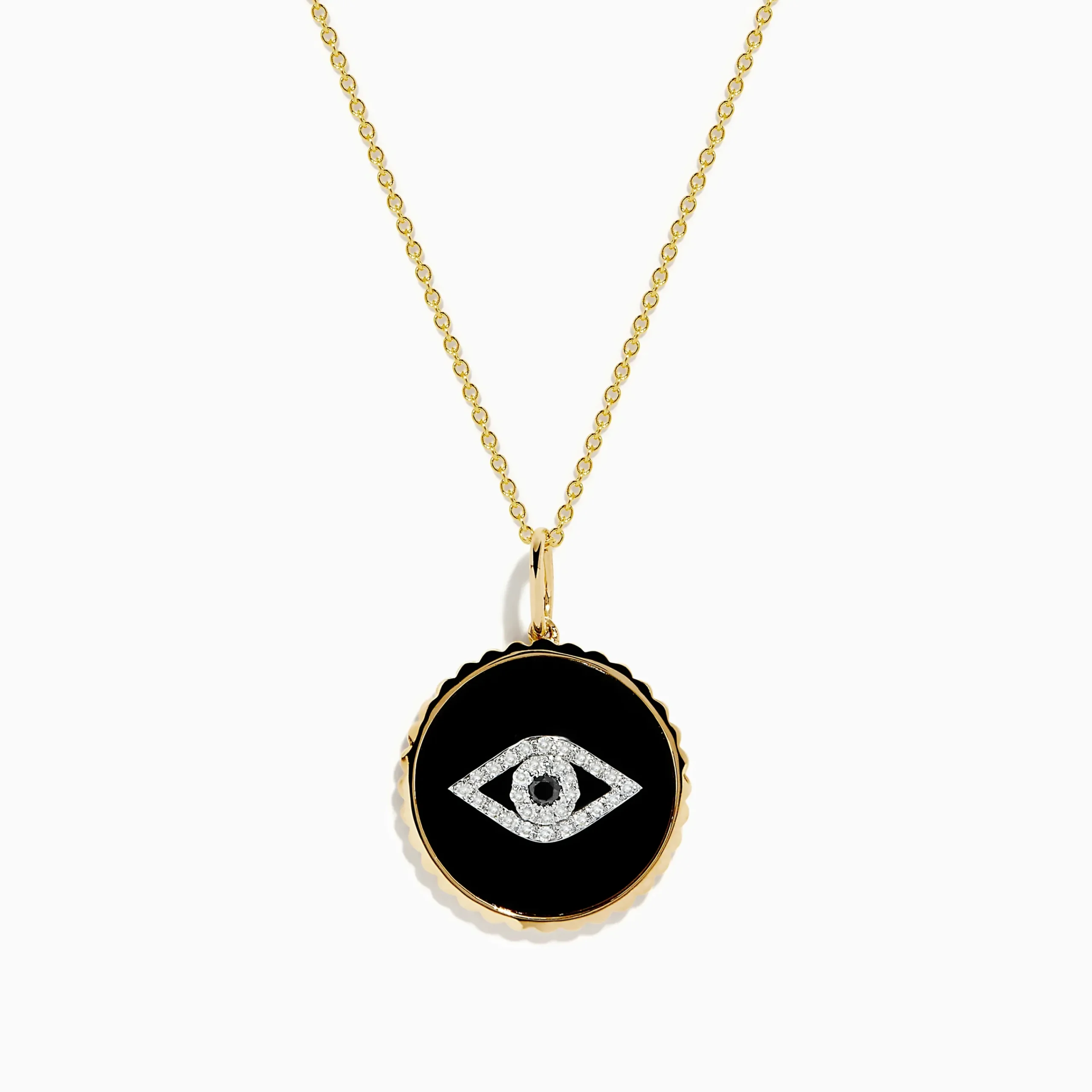 Novelty 14K Yellow Gold Black Agate and Diamond Evil Eye Pendant
