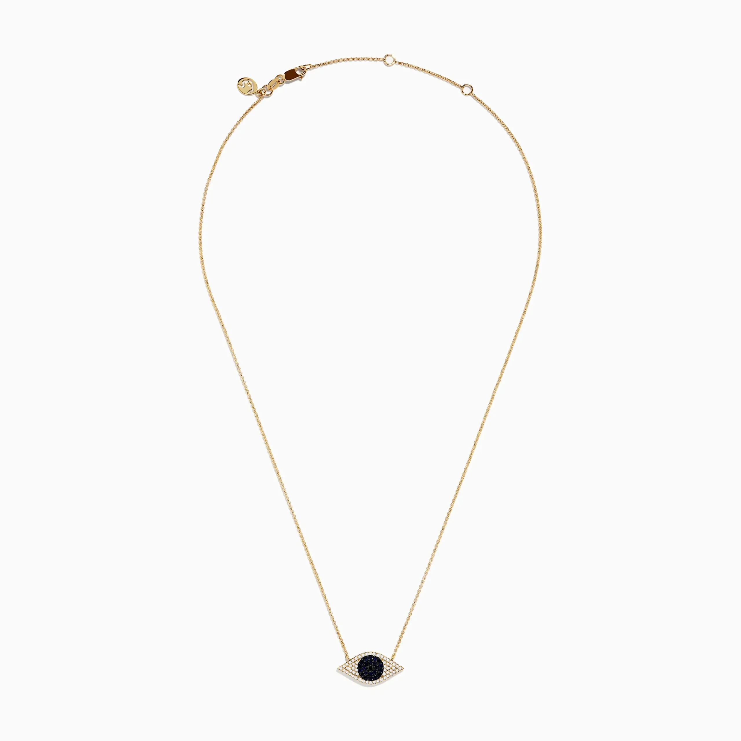 Effy Novelty 14K Yellow Gold Blue Sapphire and Diamond Evil Eye Necklace