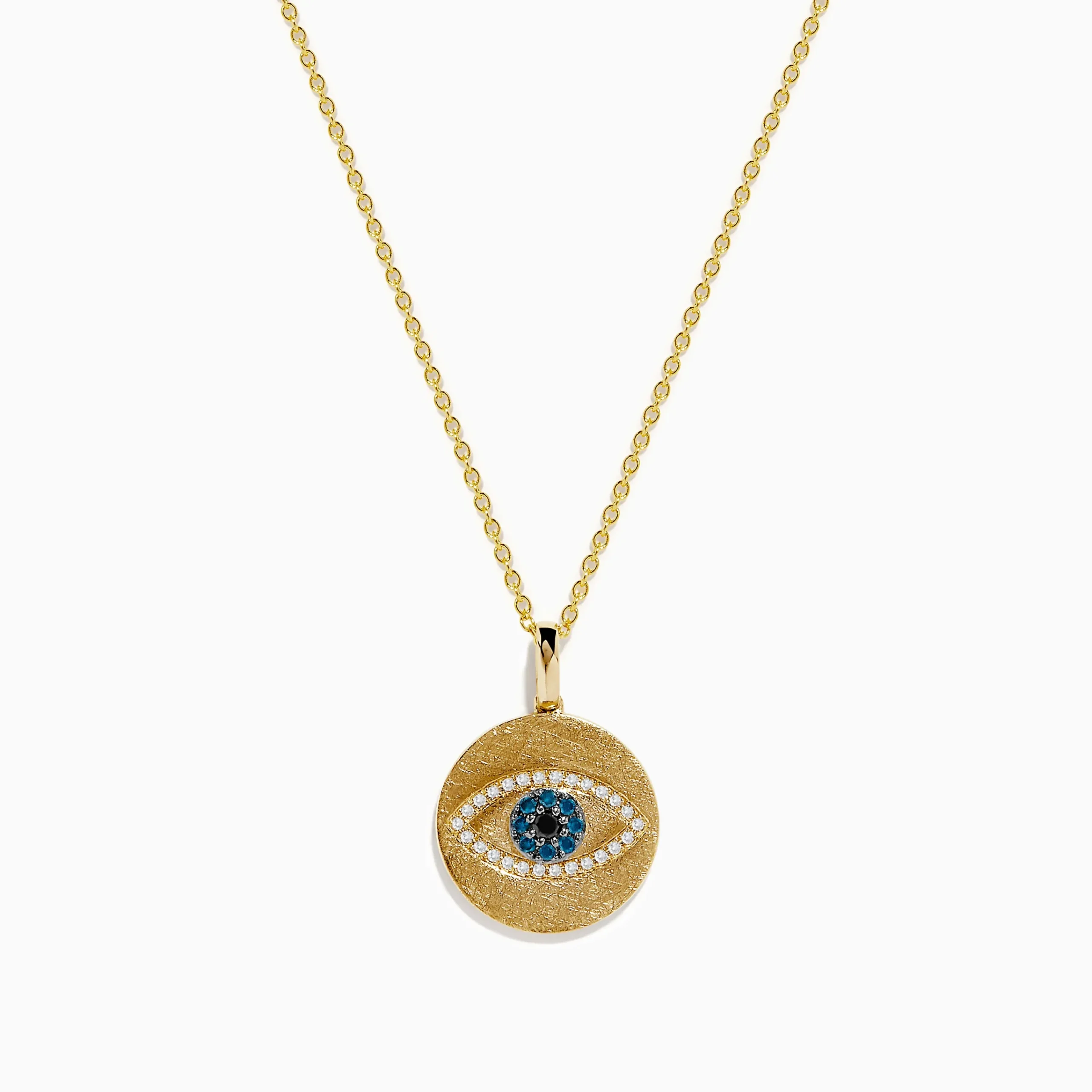 Novelty 14K Yellow Gold Blue, White and Black Diamond Evil Eye Pendant