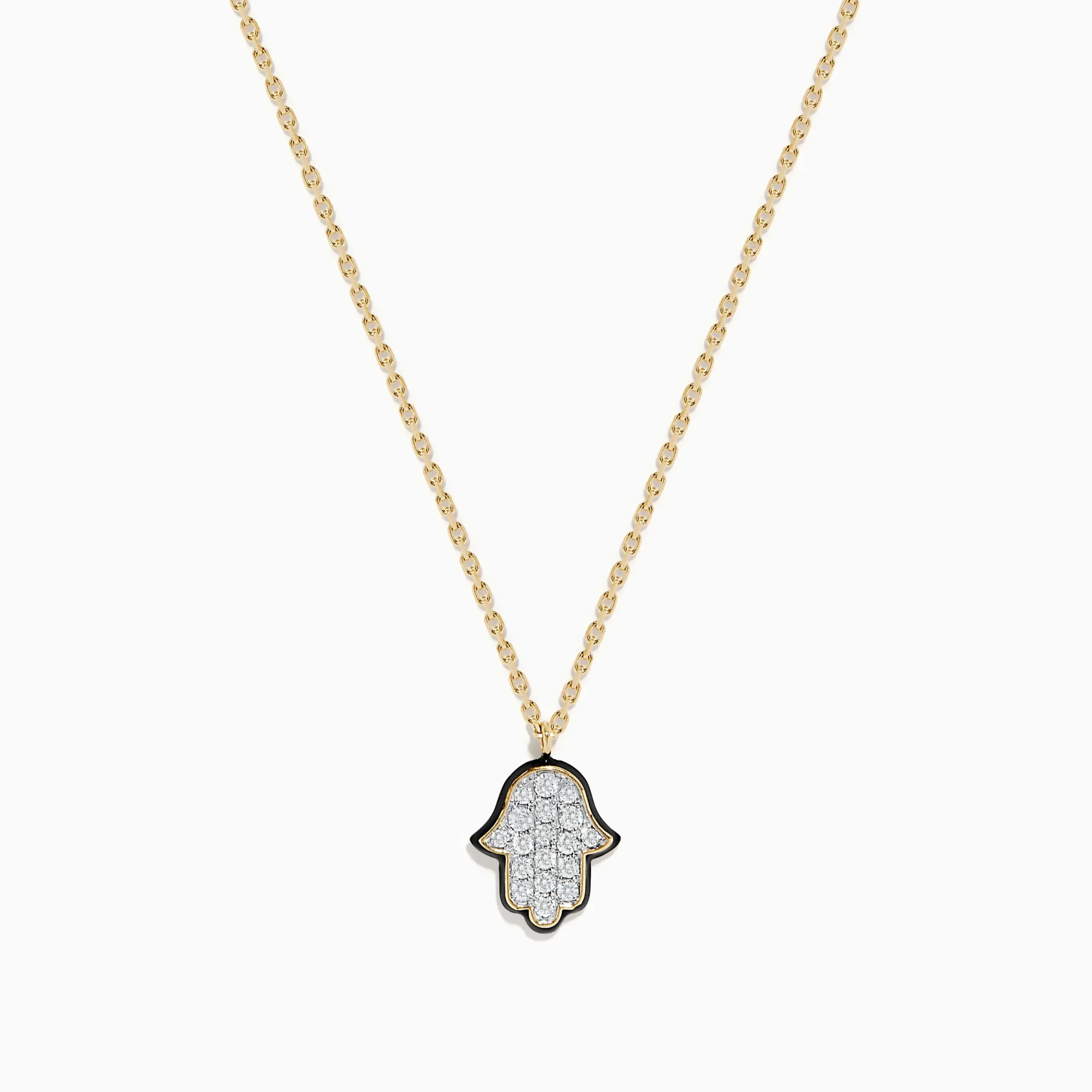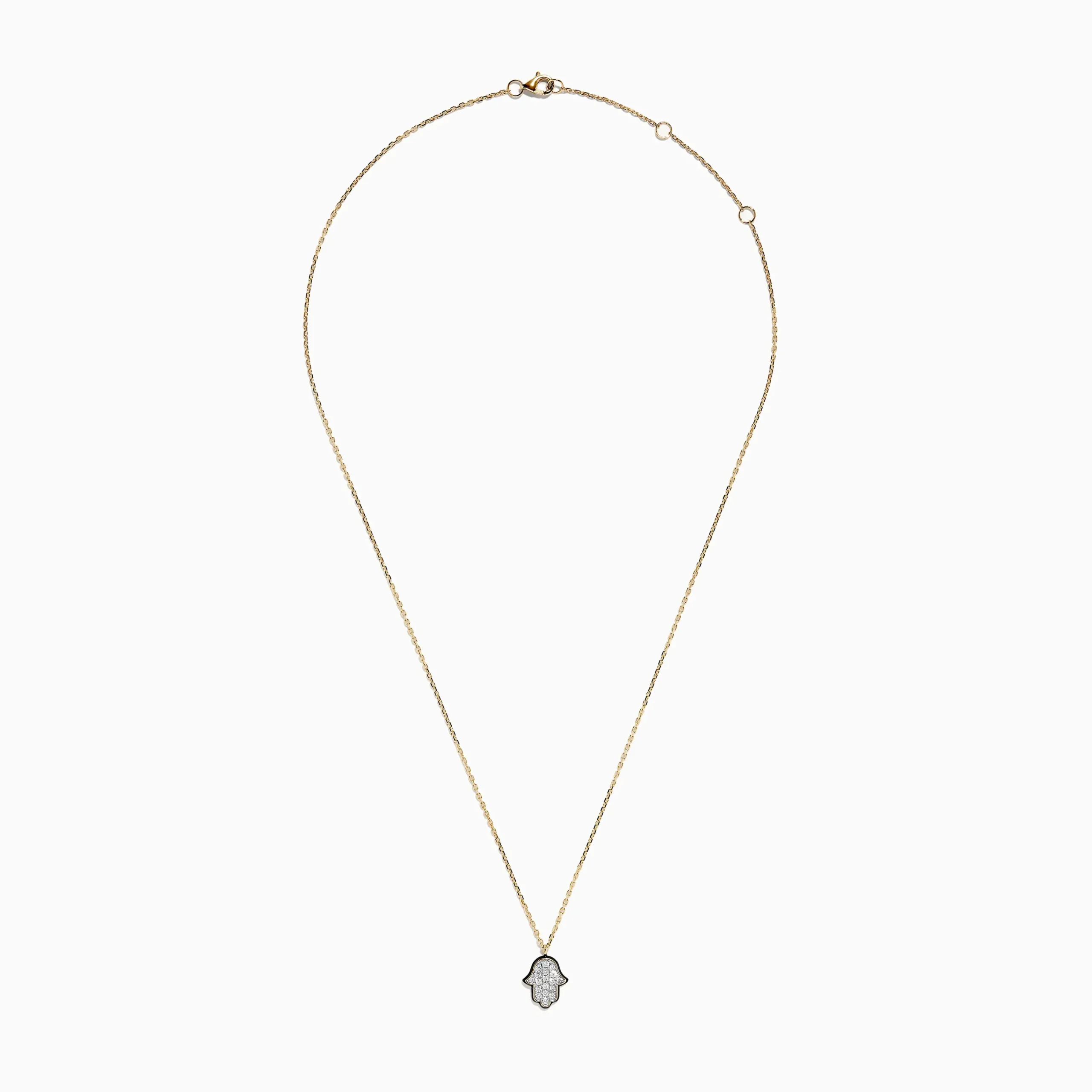 Metal:14K Gold Metal Color:YellowStone: Round Diamond 0.23Novelty 14K Yellow Gold Diamond Hamsa Pendant