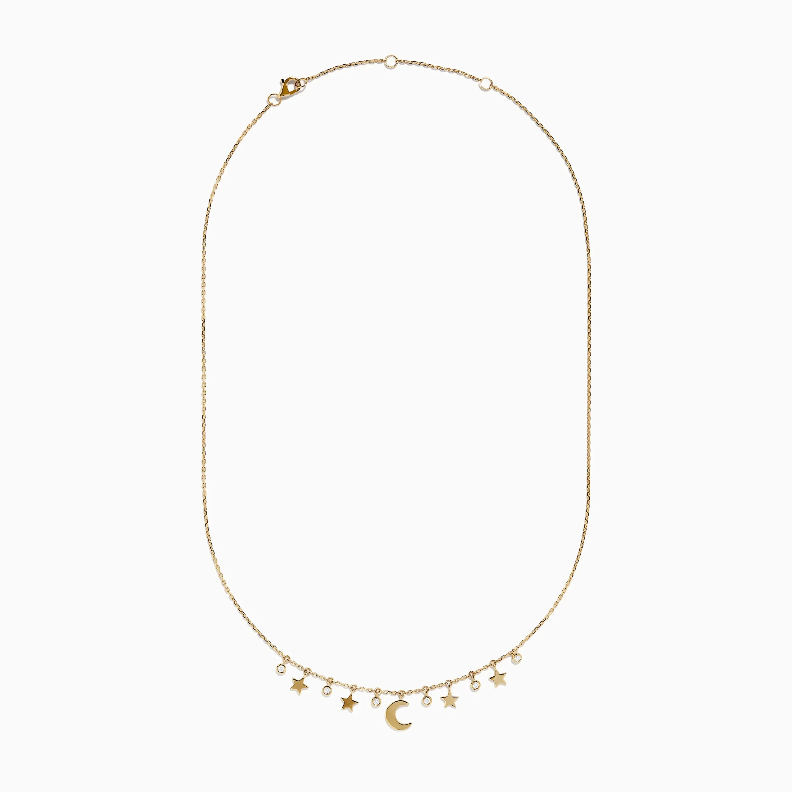 Effy Novelty 14K Yellow Gold Diamond Moon and Stars Necklace