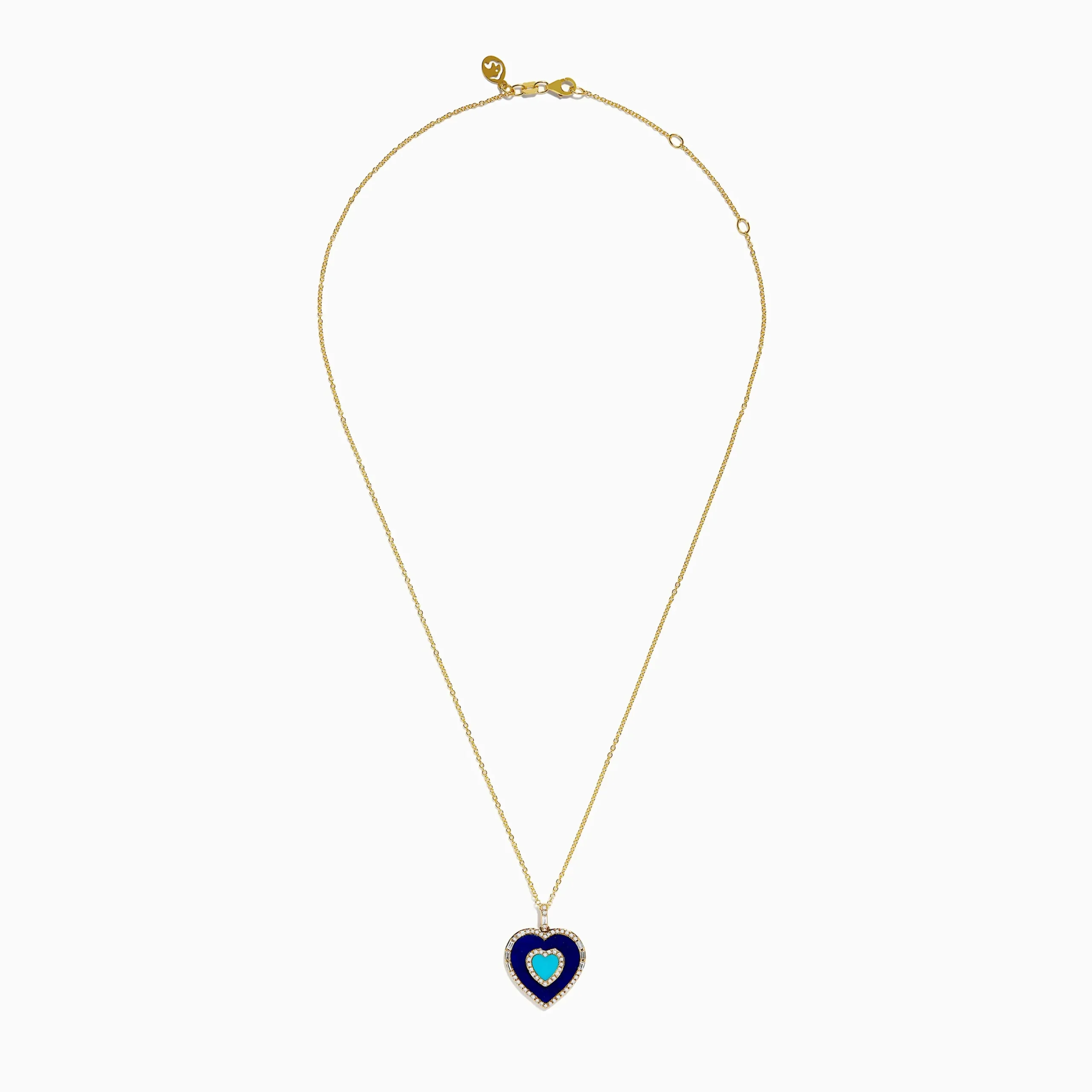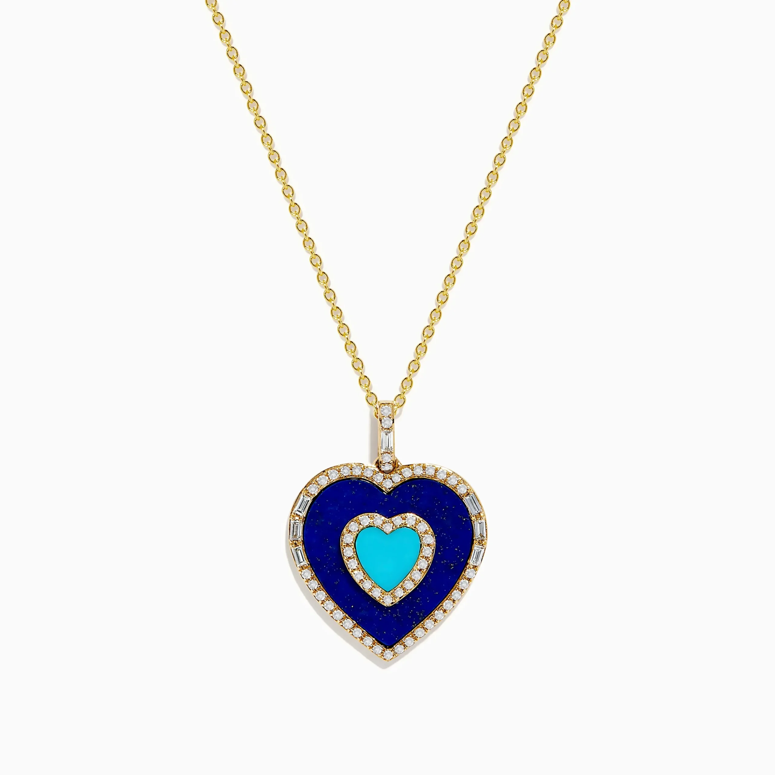 Novelty 14K Yellow Gold Lapis, Turquoise and Diamond Heart Pendant