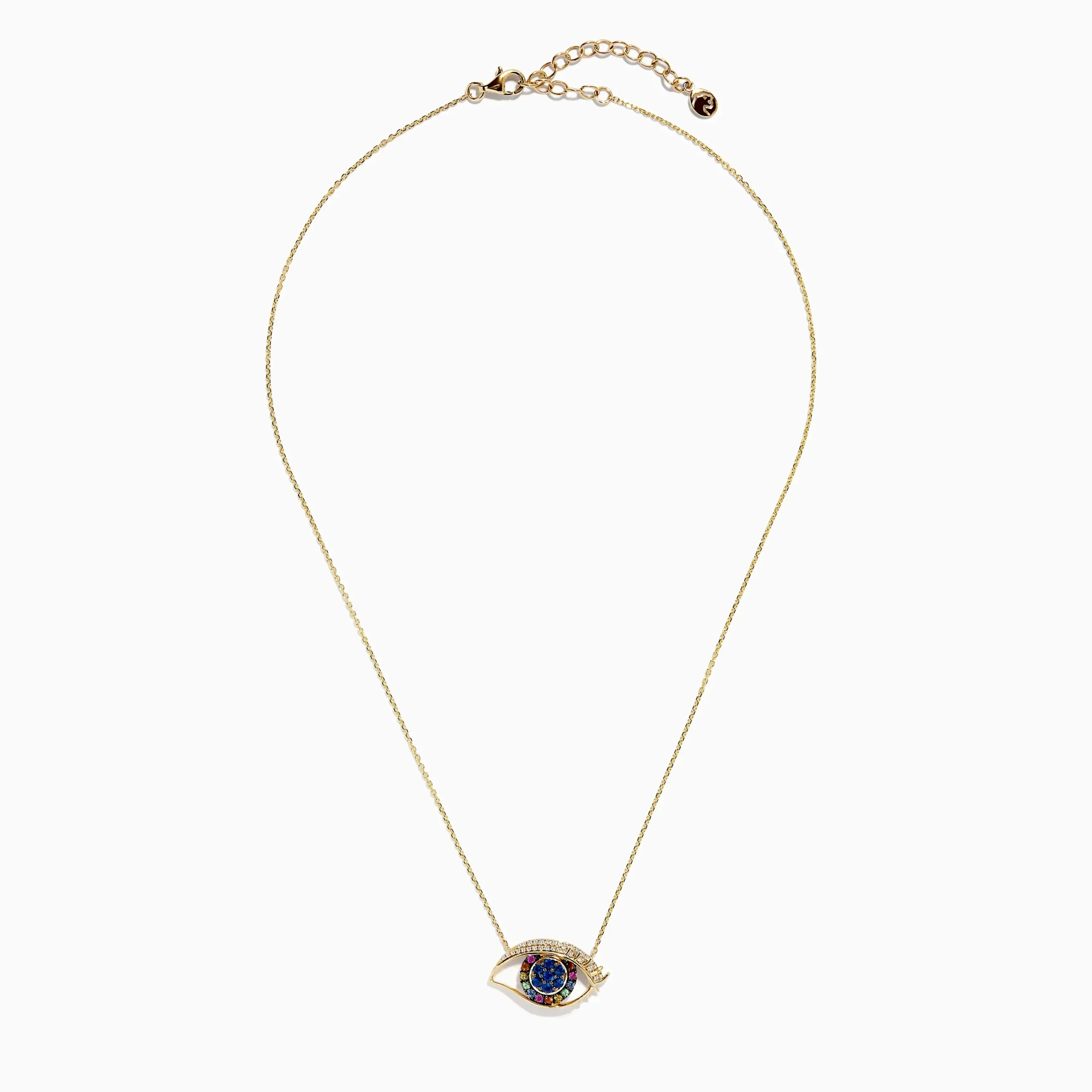Effy Novelty 14K Yellow Gold Multi Sapphire and Diamond Evil Eye Necklace