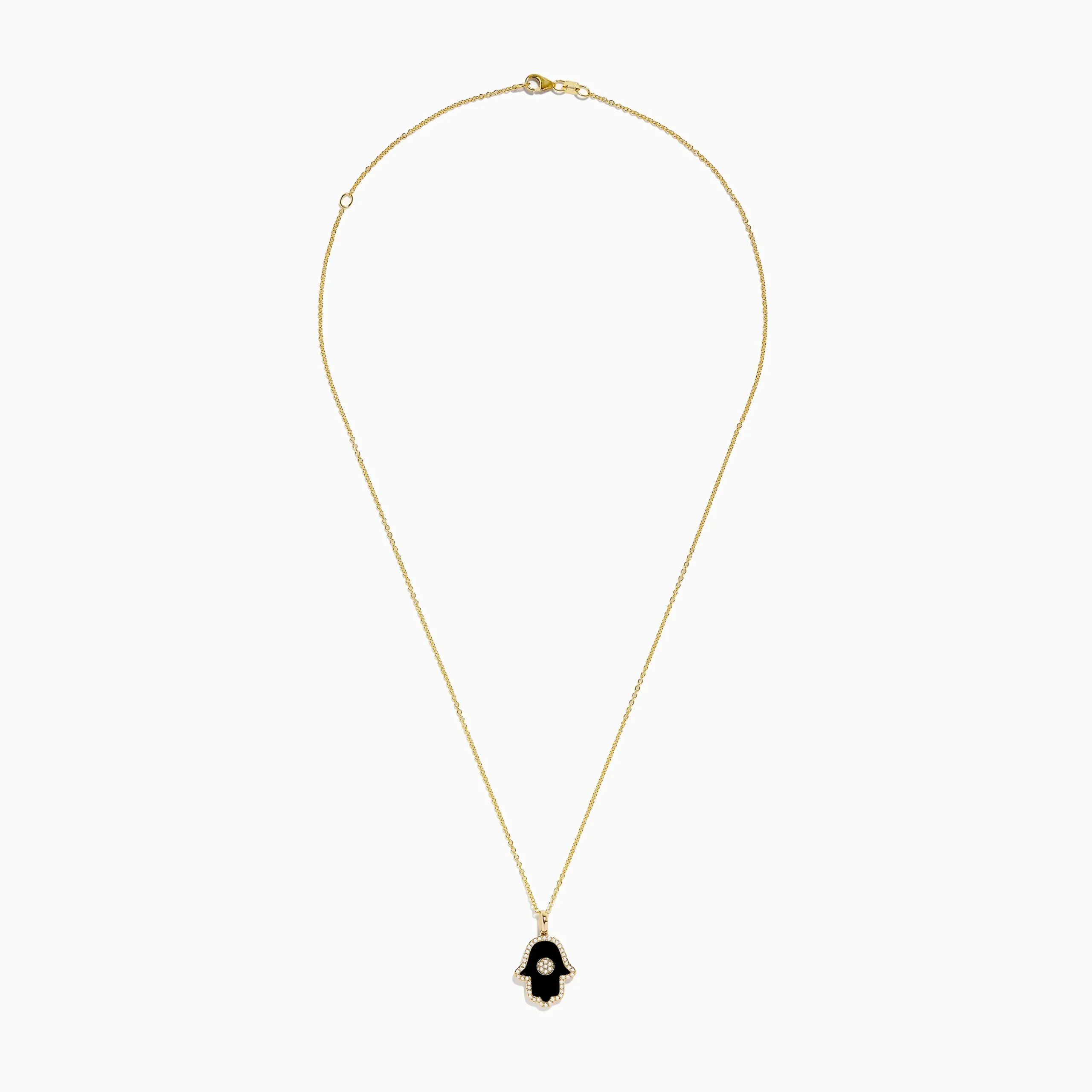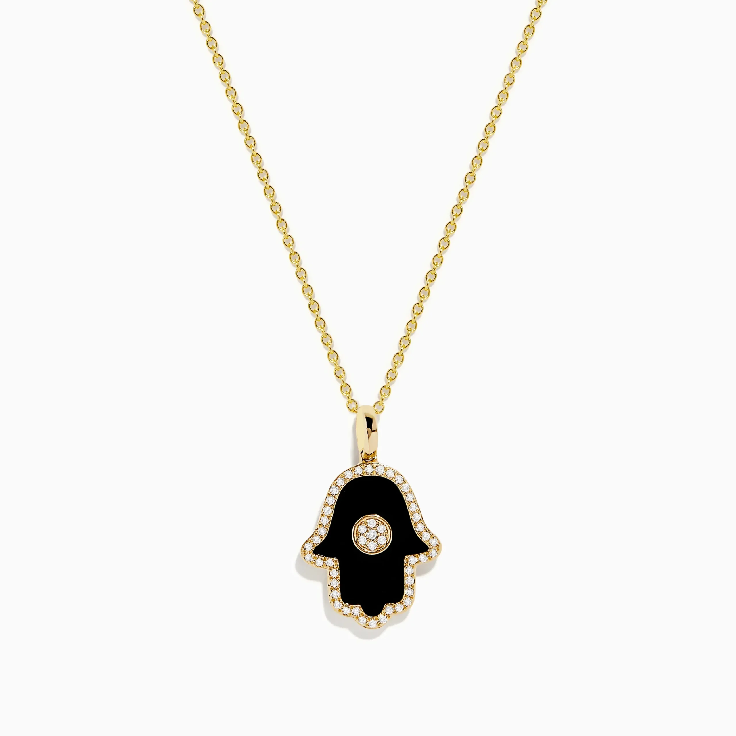 Effy Novelty 14K Yellow Gold Onyx and Diamond Hamsa Pendant