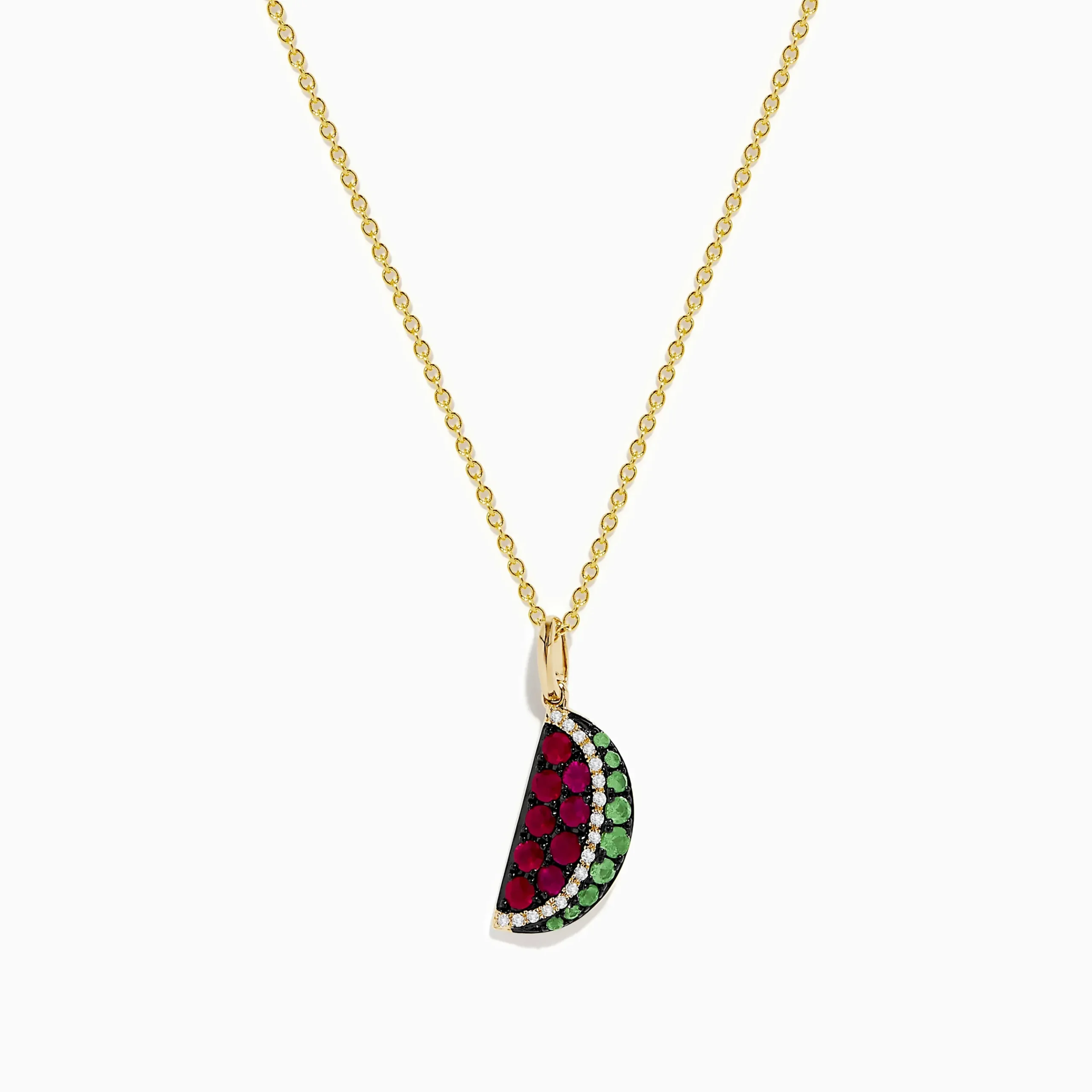 Novelty 14K Yellow Gold Ruby, Tsavorite and Diamond Watermelon Pendant