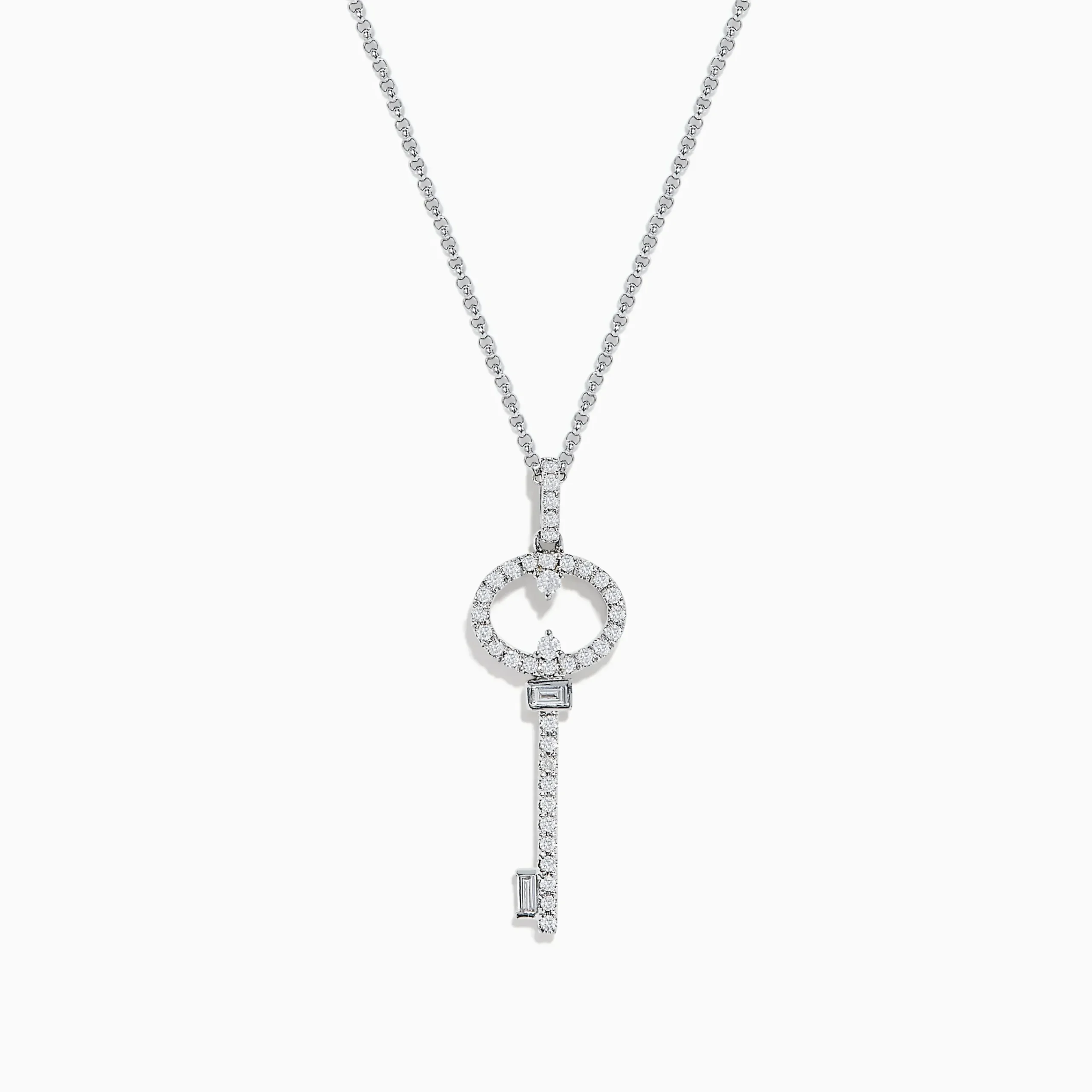 Metal:Sterling Silver Metal Color:WhiteStone: Round Diamond 0.3Novelty 925 Sterling Silver Diamond Key Pendant
