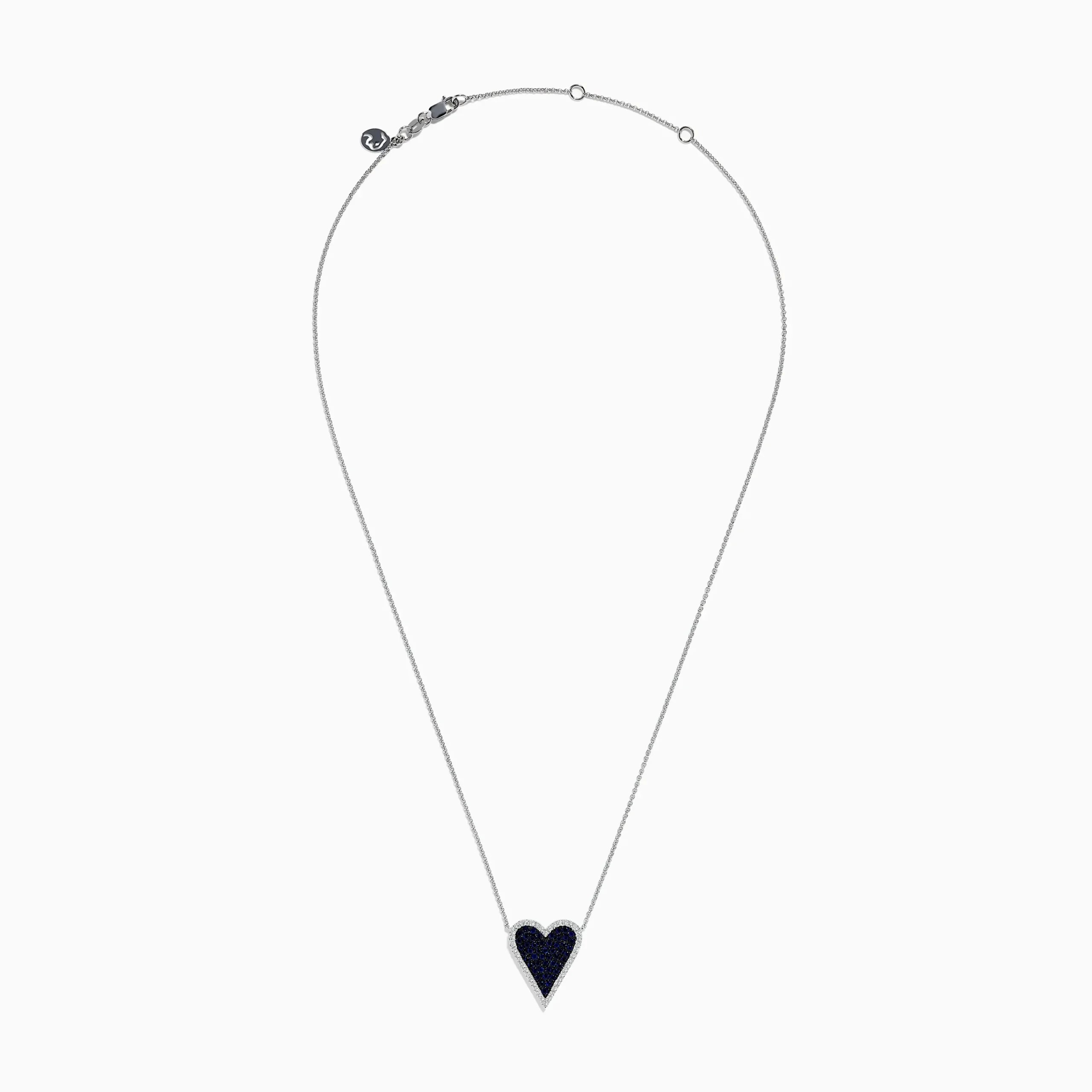 Effy Royale Bleu 14K White Gold Blue Sapphire and Diamond Heart Necklace