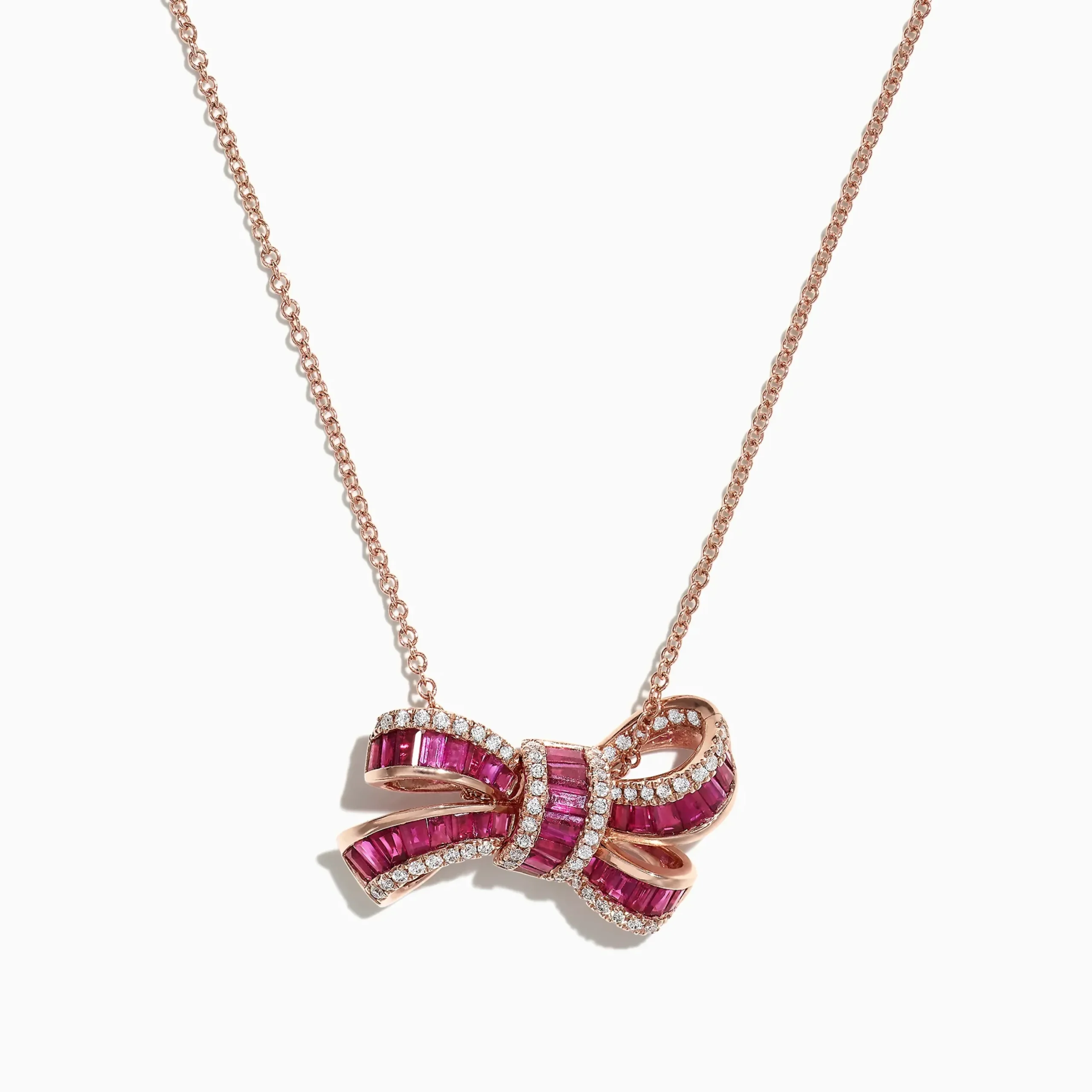 Effy Ruby Royale 14K Rose Gold Ruby Diamond Bow Pendant, 1.94 TCW