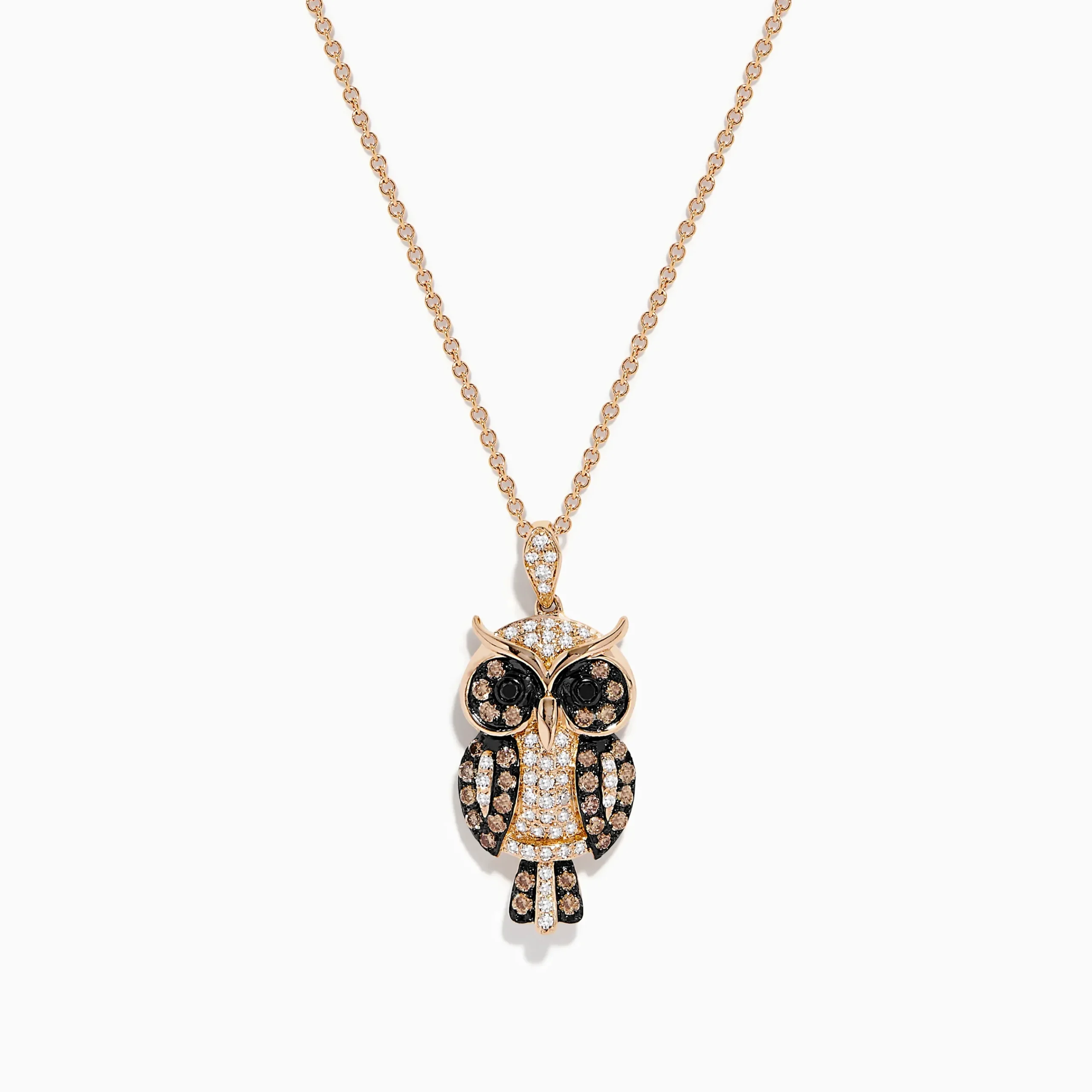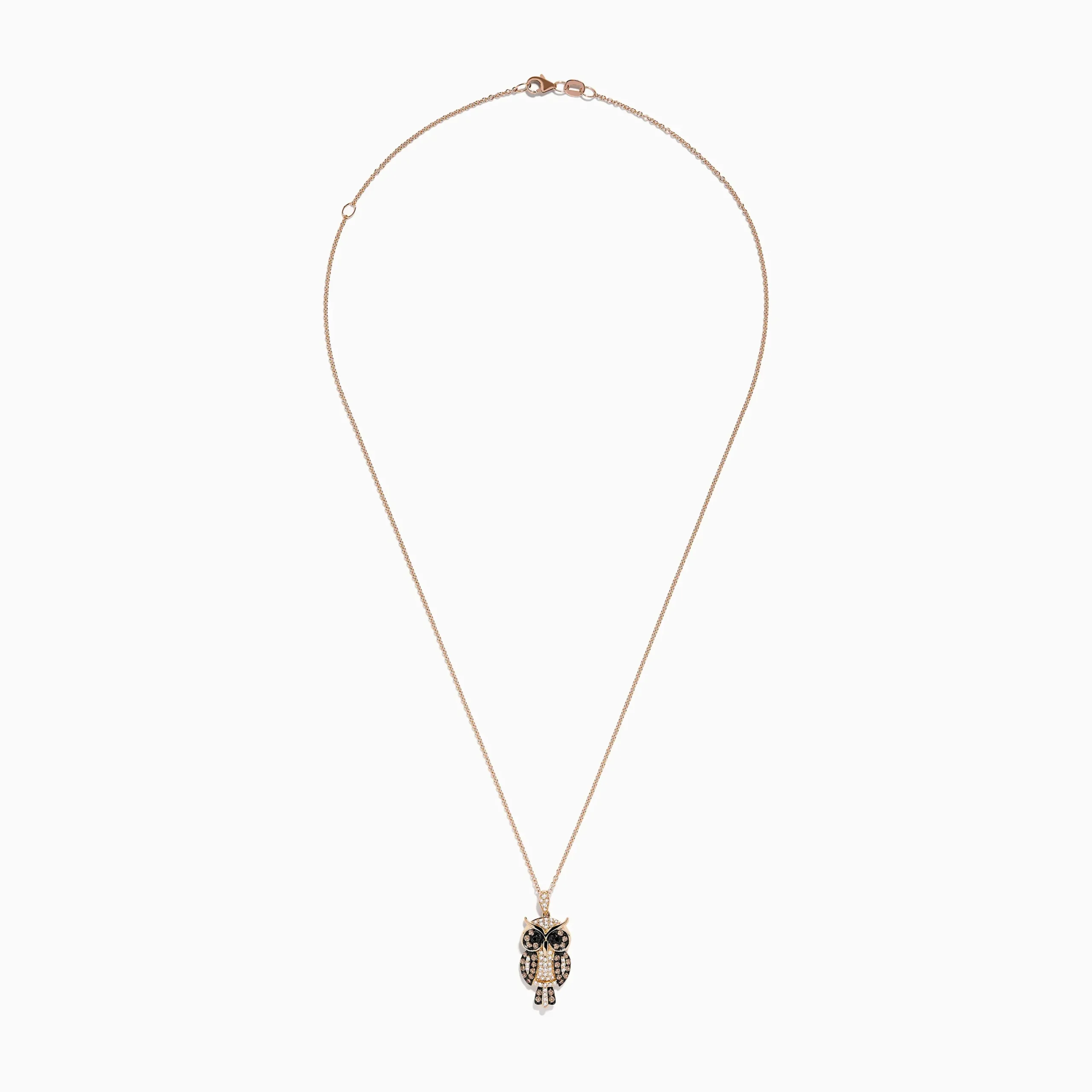 Effy Safari 14K Rose Gold Brown, Black and White Diamond Owl Pendant, 0.58 TCW