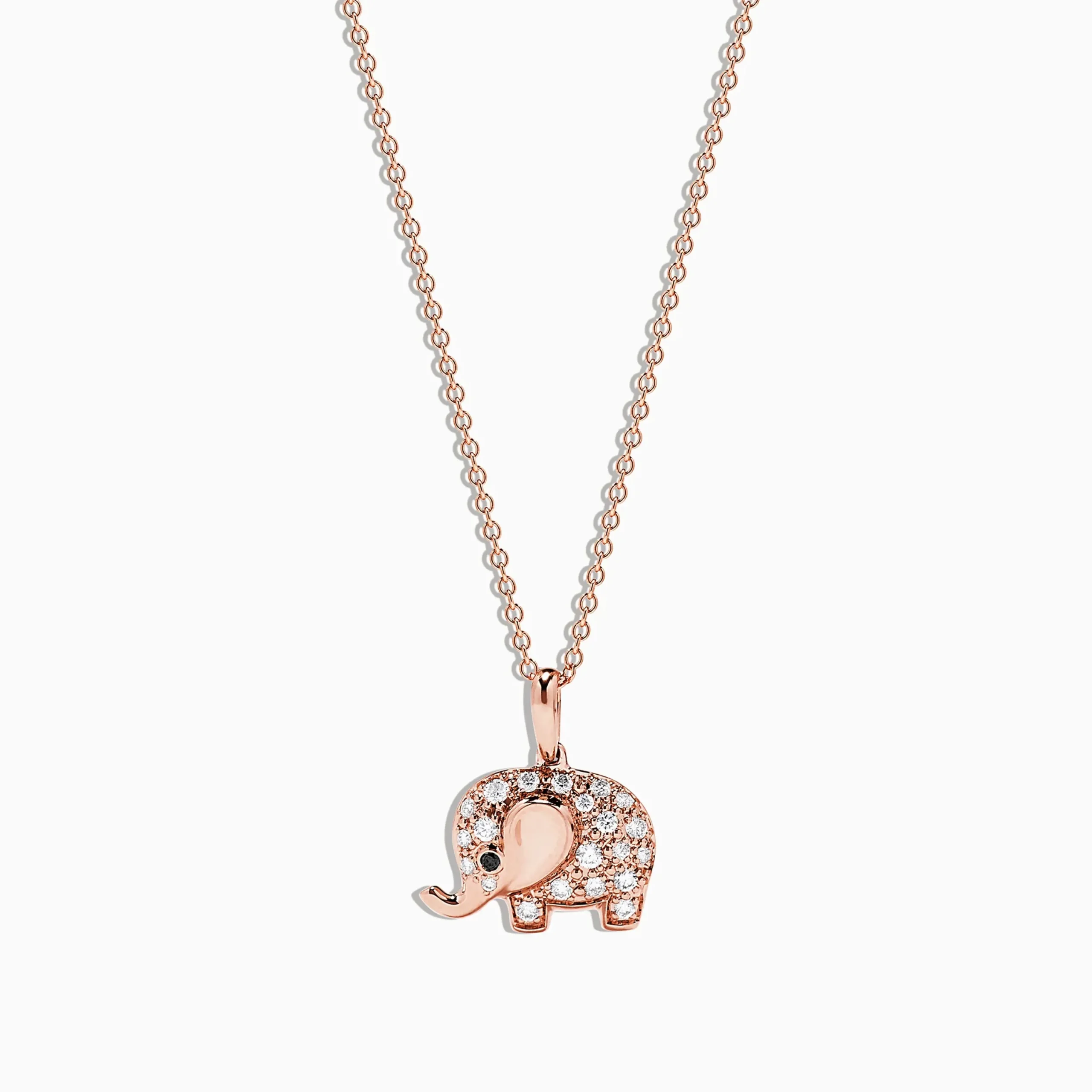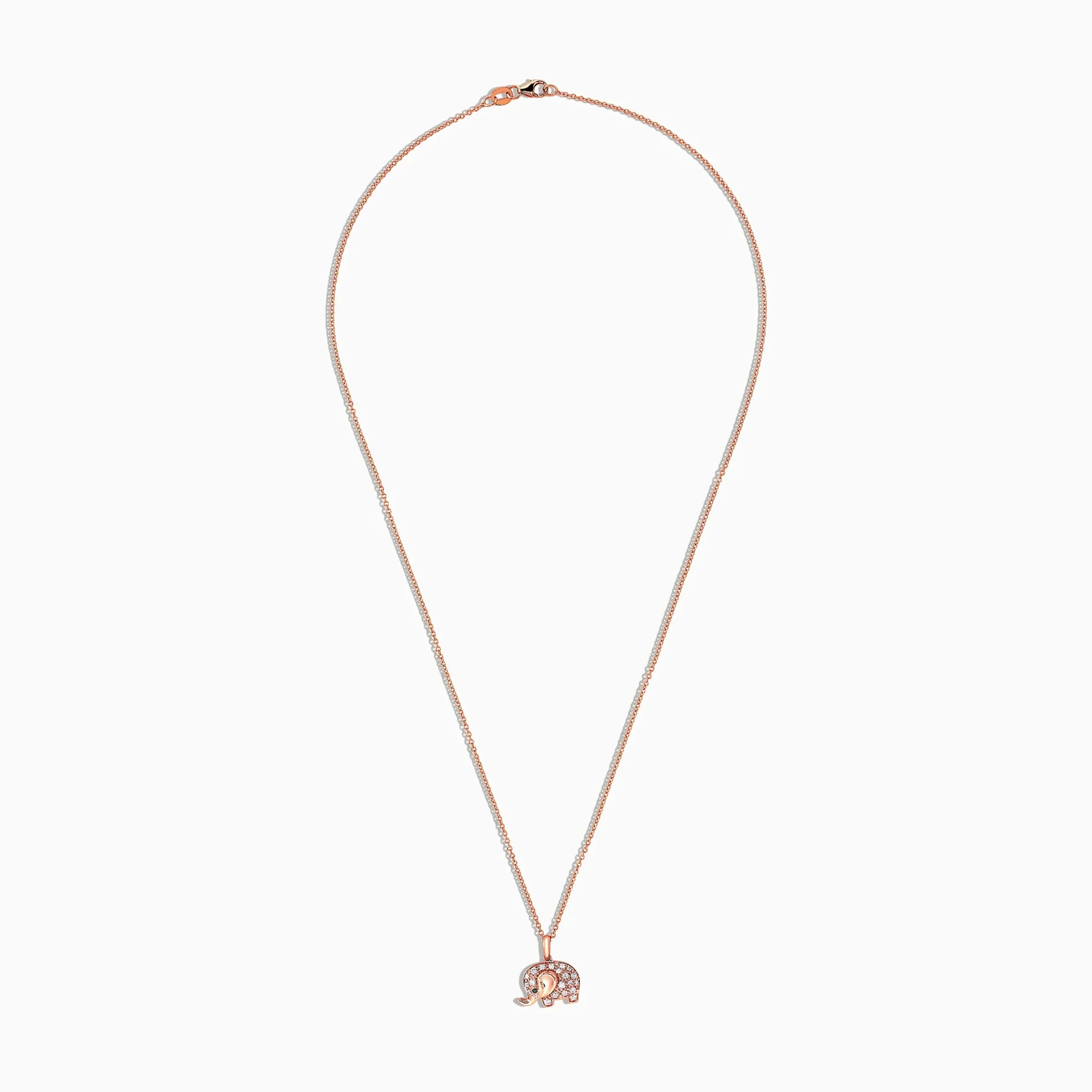 Effy Safari 14K Rose Gold Diamond Elephant Pendant, 0.21 TCW