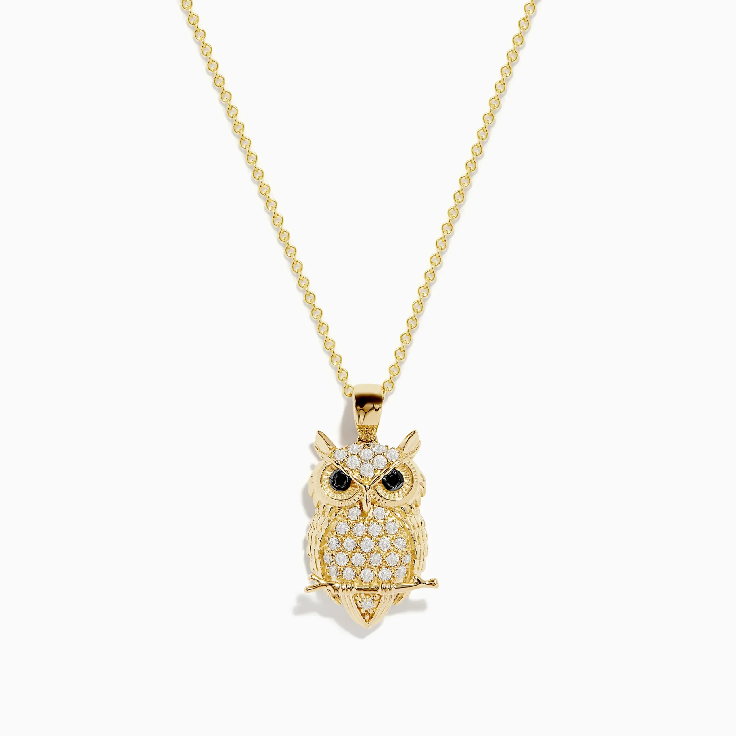 Effy Safari 14K Yellow Gold Black and White Diamond Owl Pendant