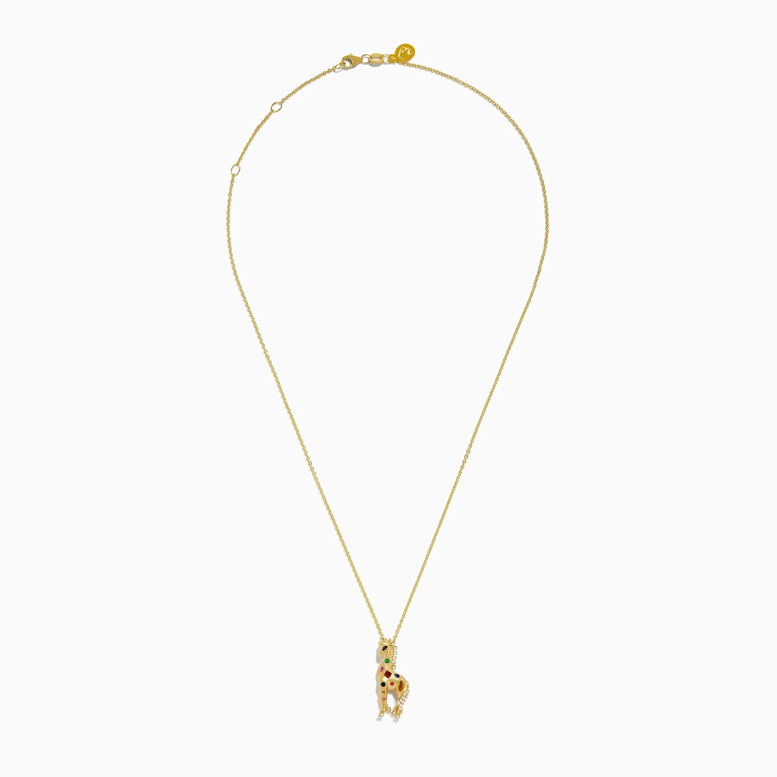 Safari 14K Yellow Gold Multi Sapphire and Diamond Giraffe Pendant