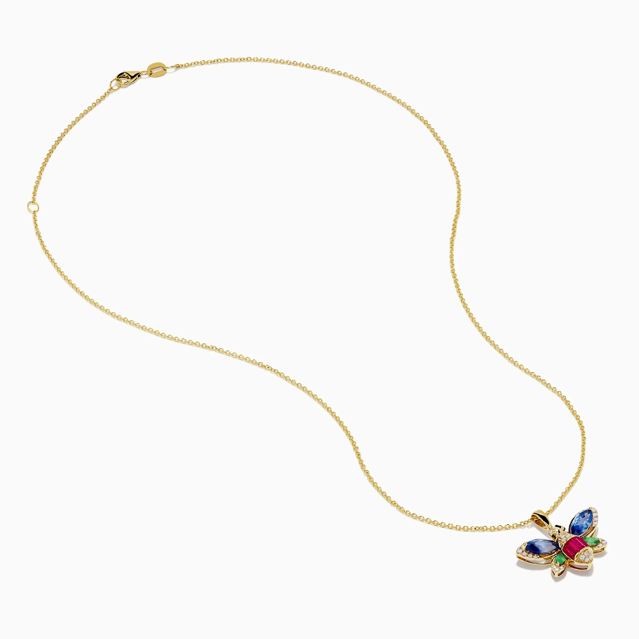 Safari 14K Yellow Gold Sapphire, Emerald, Ruby and Diamond Dragon Fly Pendant
