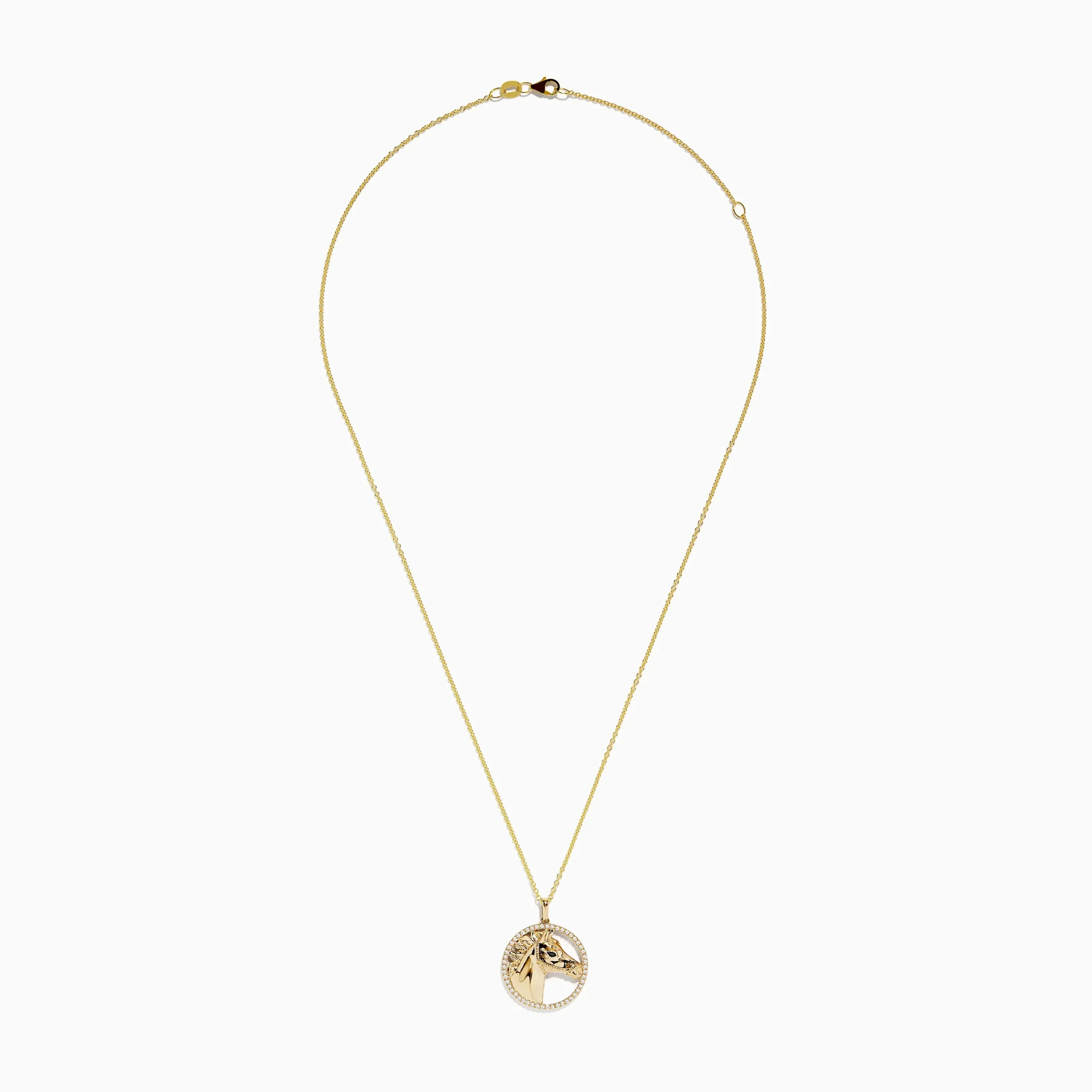Effy Safari 14K Yellow Gold White and Black Diamond Horse Pendant
