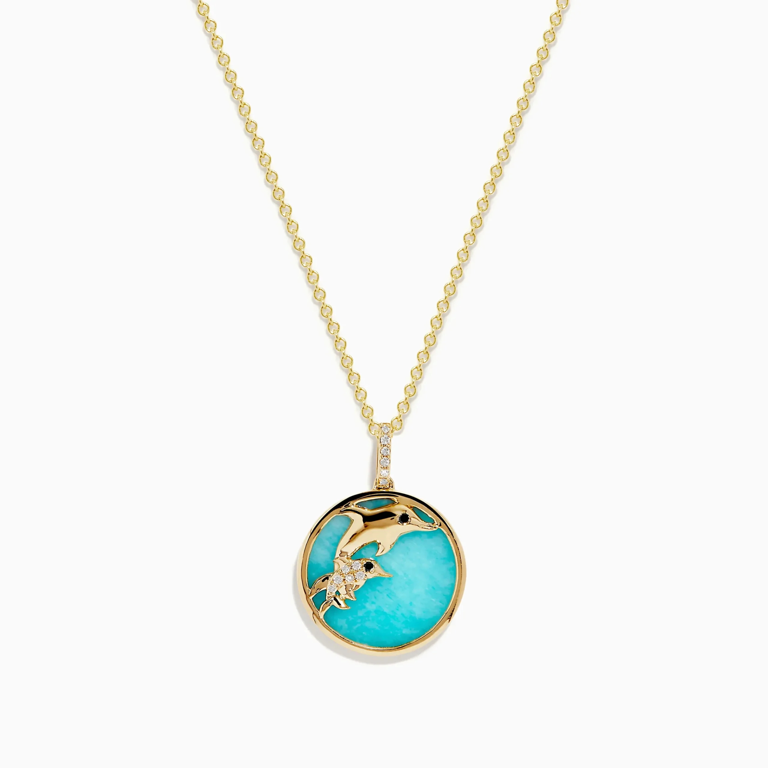 Effy Seaside 14K Gold Amazonite and Diamond Dolphins Pendant
