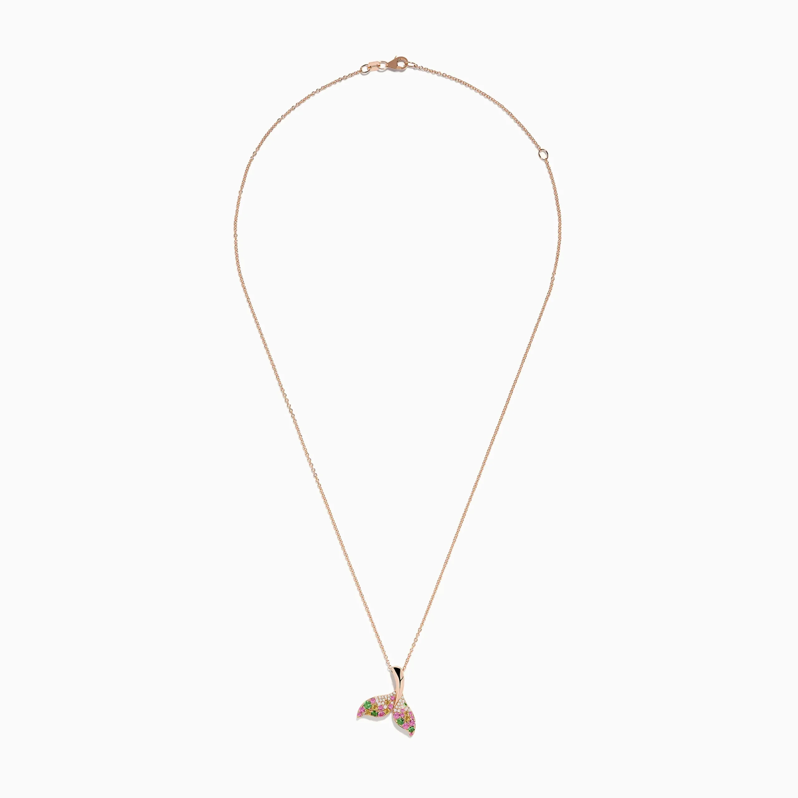 Effy Seaside 14K Rose Gold Multi Sapphire and Diamond Whale Tail Pendant