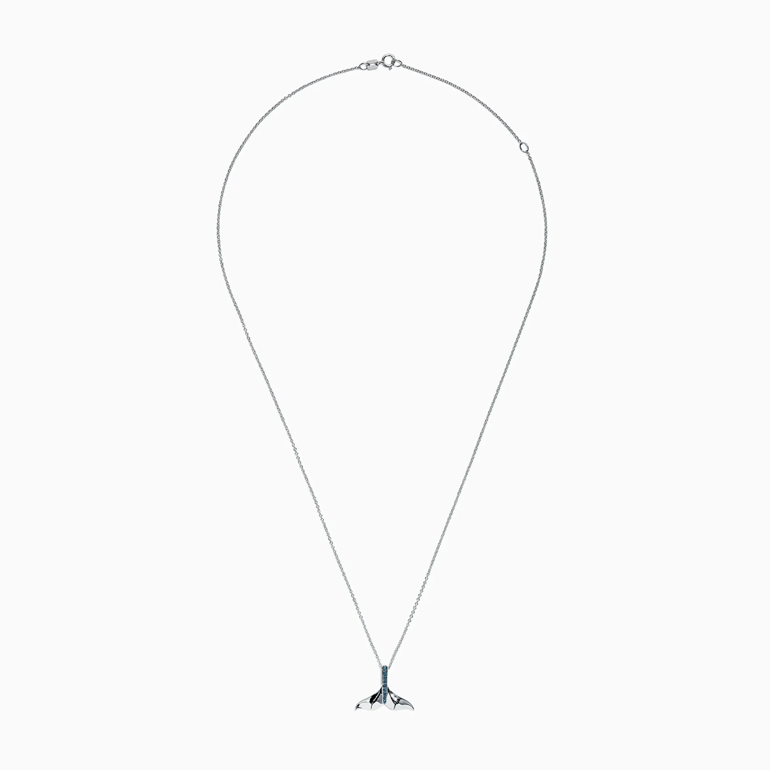 Effy Seaside 14K White Gold Blue Diamond Whale’s Tail Pendant, 0.05 TCW