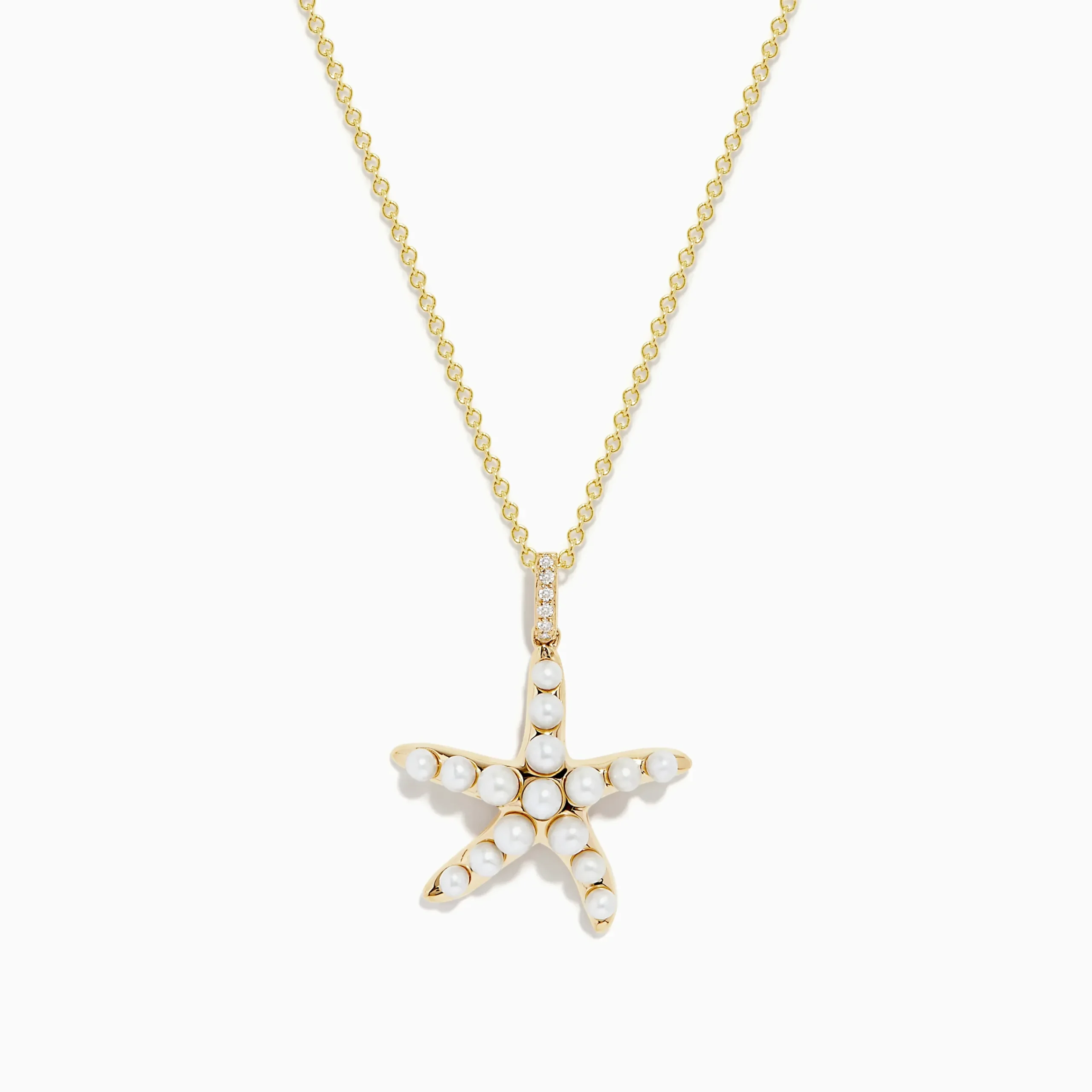 Effy Seaside 14K Yellow Gold Fresh Water Pearl & Diamond Starfish Pendant