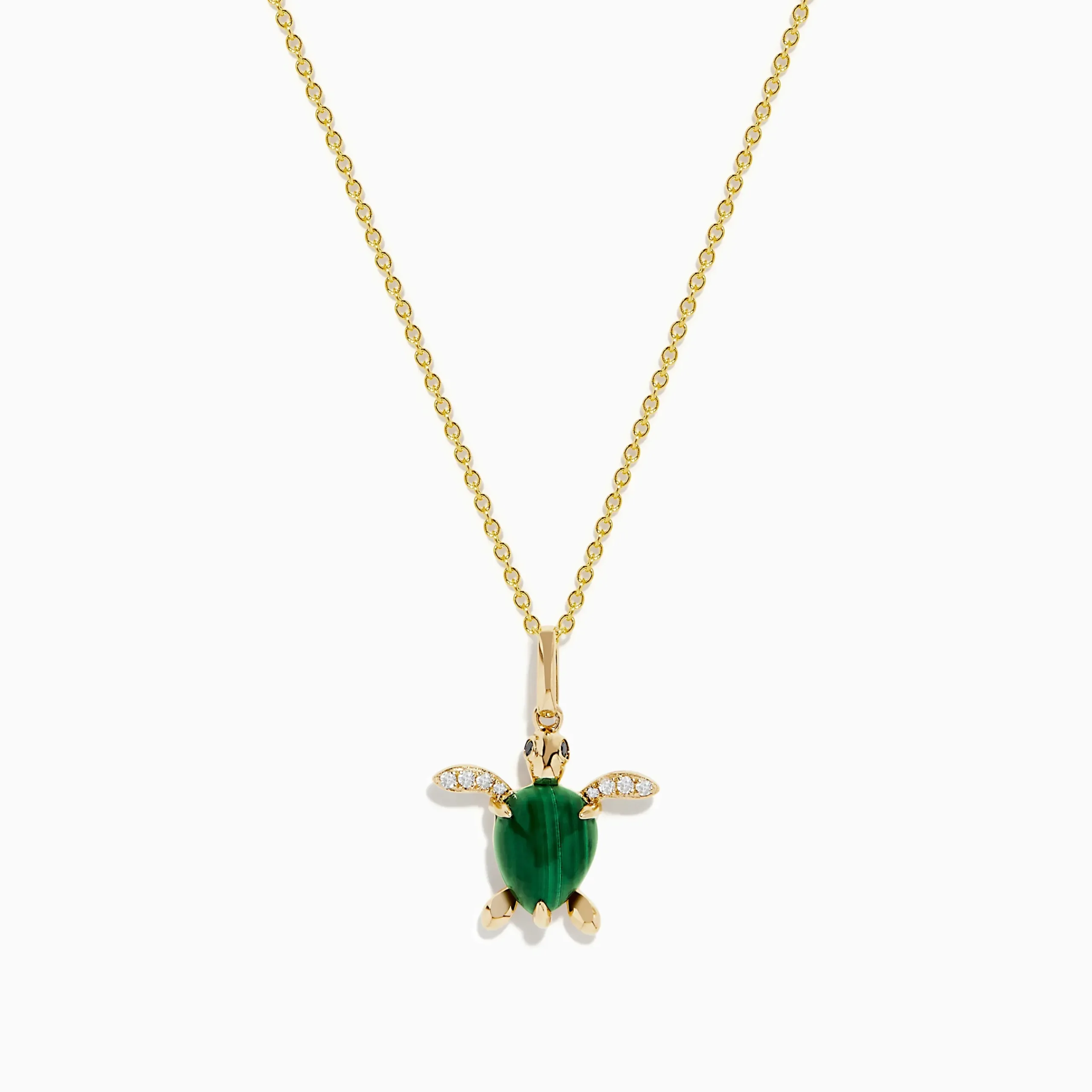 Effy Seaside 14K Yellow Gold Malachite and Diamond Turtle Pendant