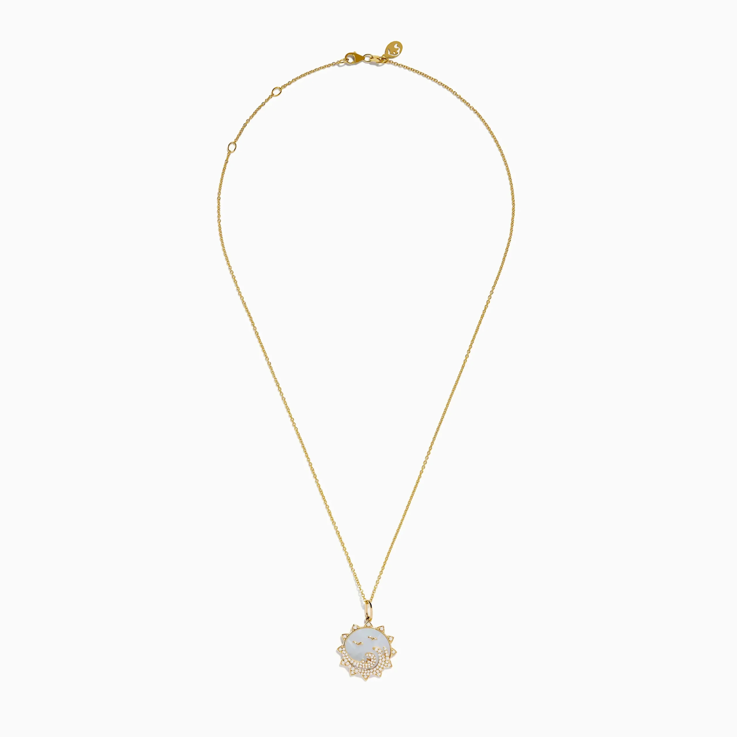 Seaside 14K Yellow Gold Mother Of Pearl and Diamond Bird and Sea Pendant