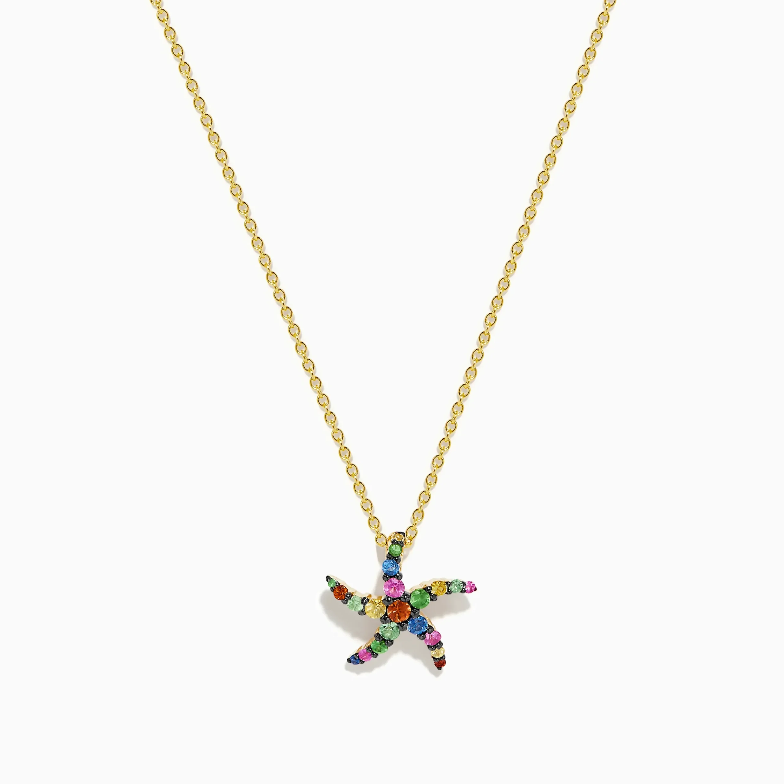 Metal:14K Gold Metal Color:YellowStone: Round Multi Sapphire 0.49Seaside 14K Yellow Gold Multi Sapphire Starfish Pendant