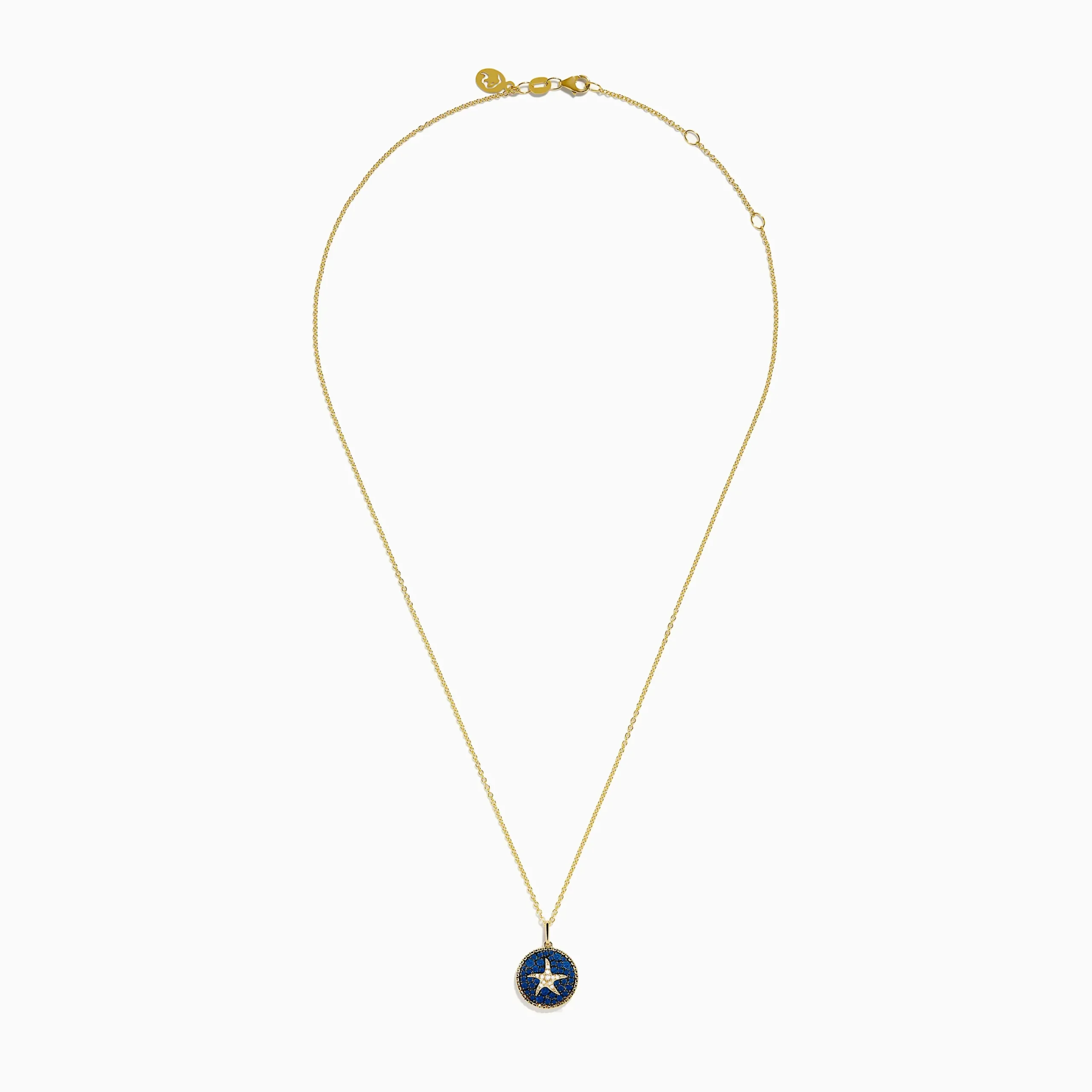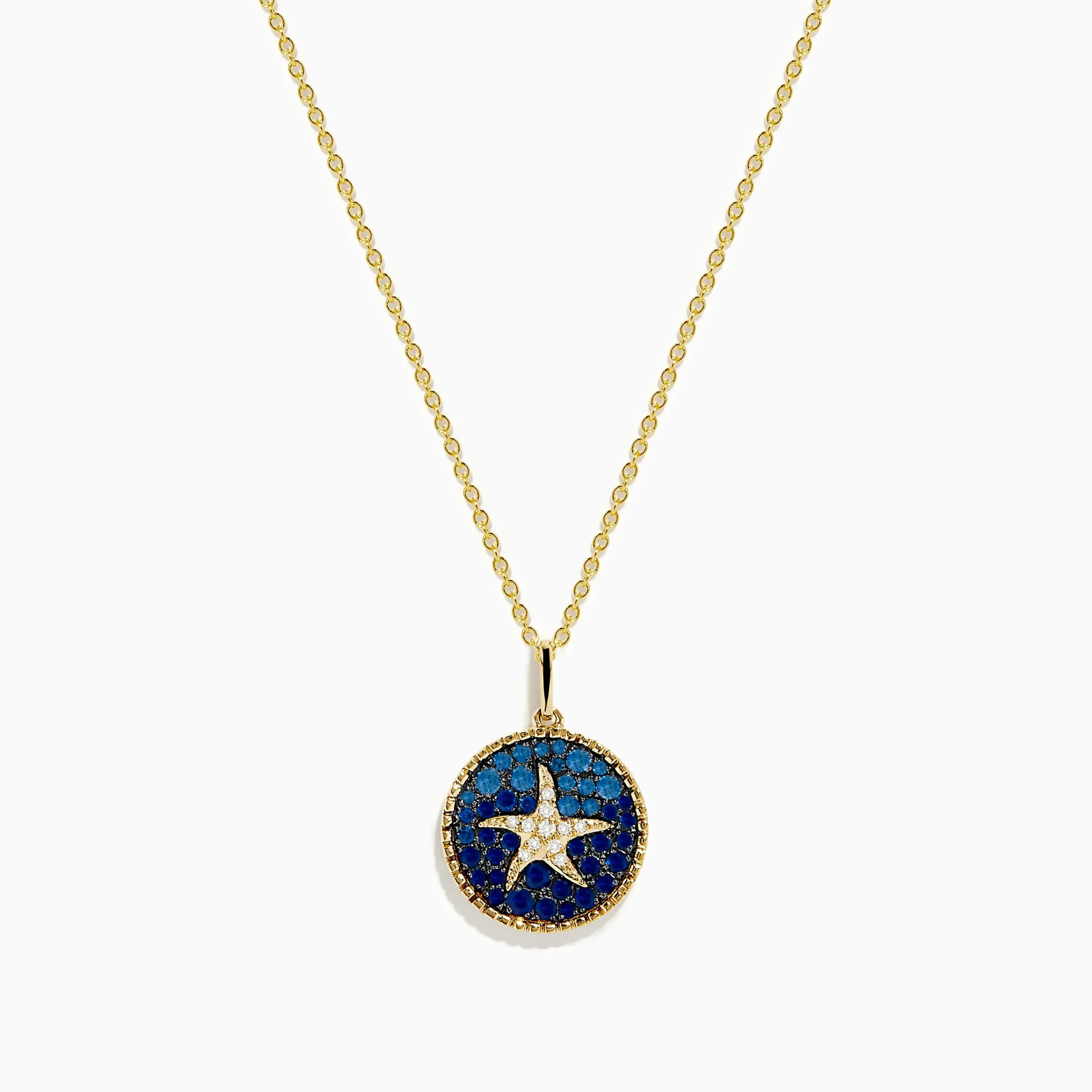 Seaside 14K Yellow Gold Sapphire and Diamond Starfish Pendant
