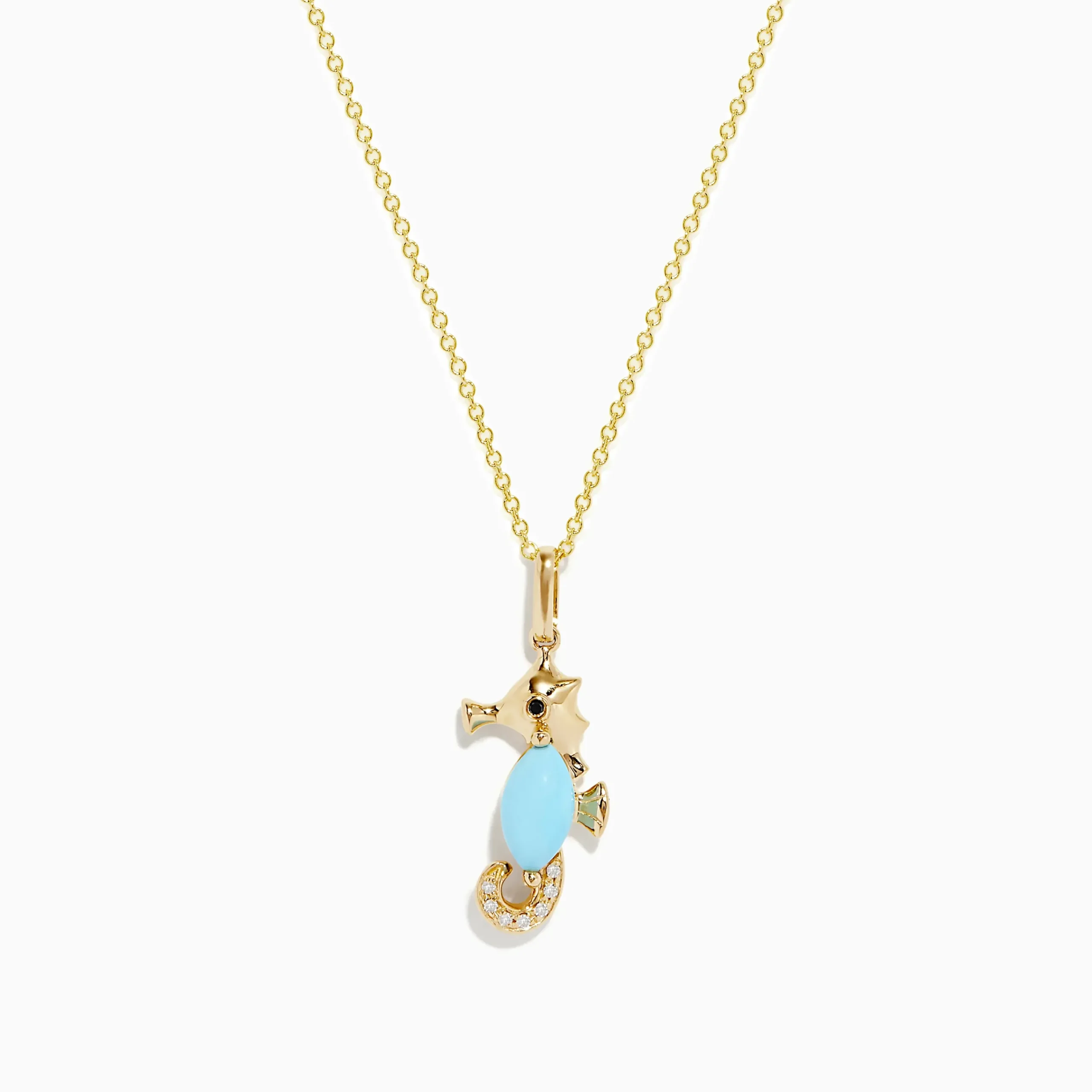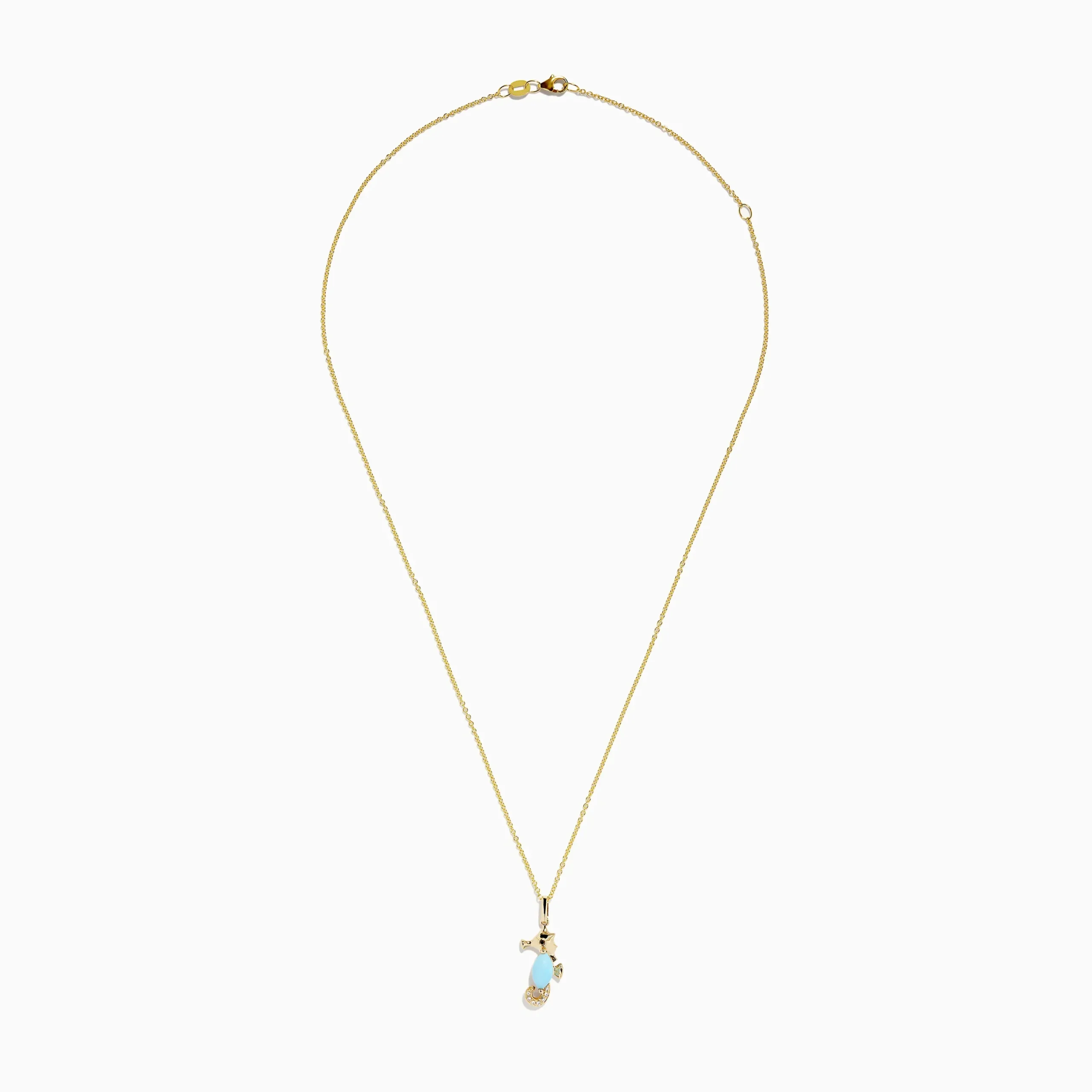 Seaside 14K Yellow Gold Turquoise and Diamond Seahorse Pendant