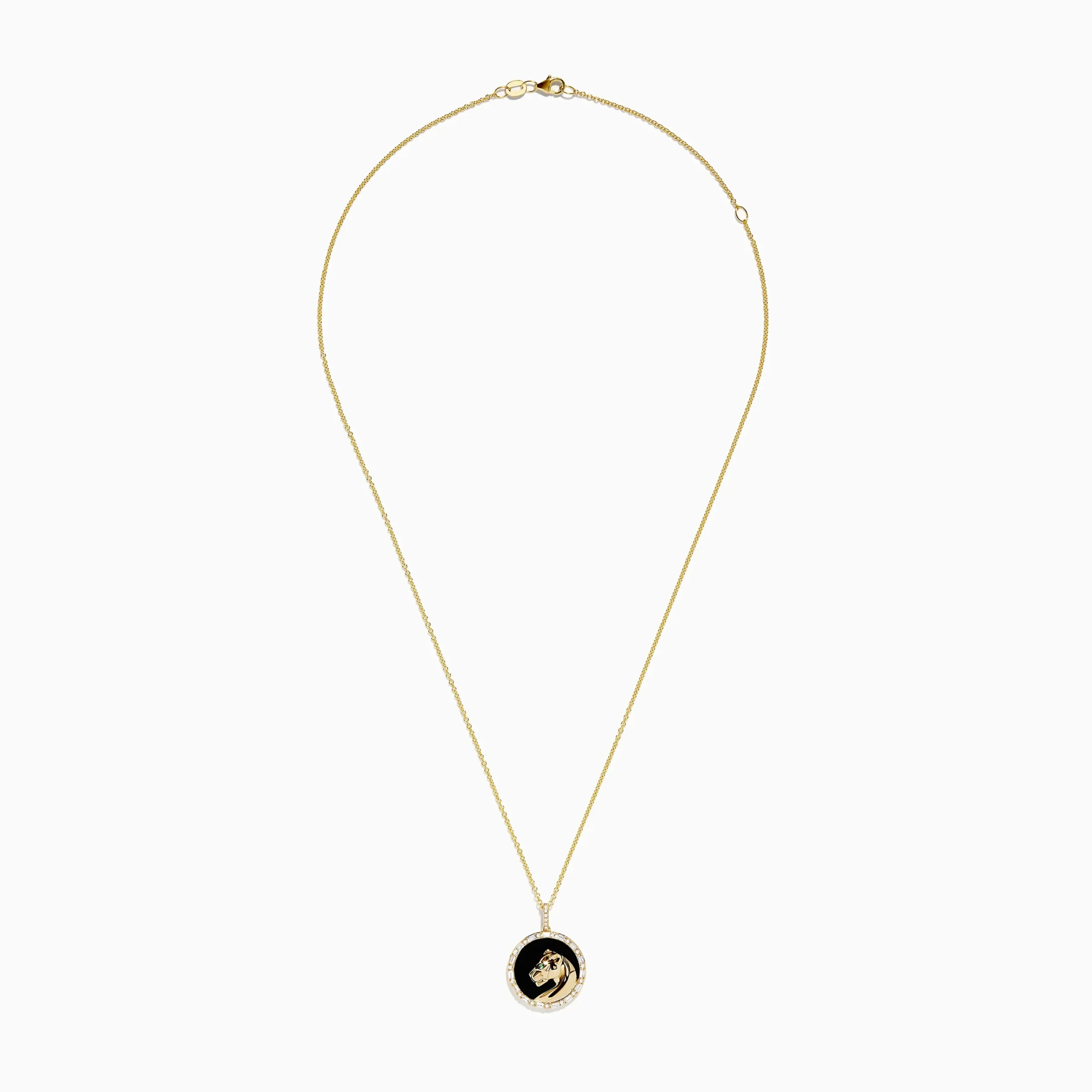 Signature 14K Yellow Gold Onyx Emerald and Diamond Panther Pendant