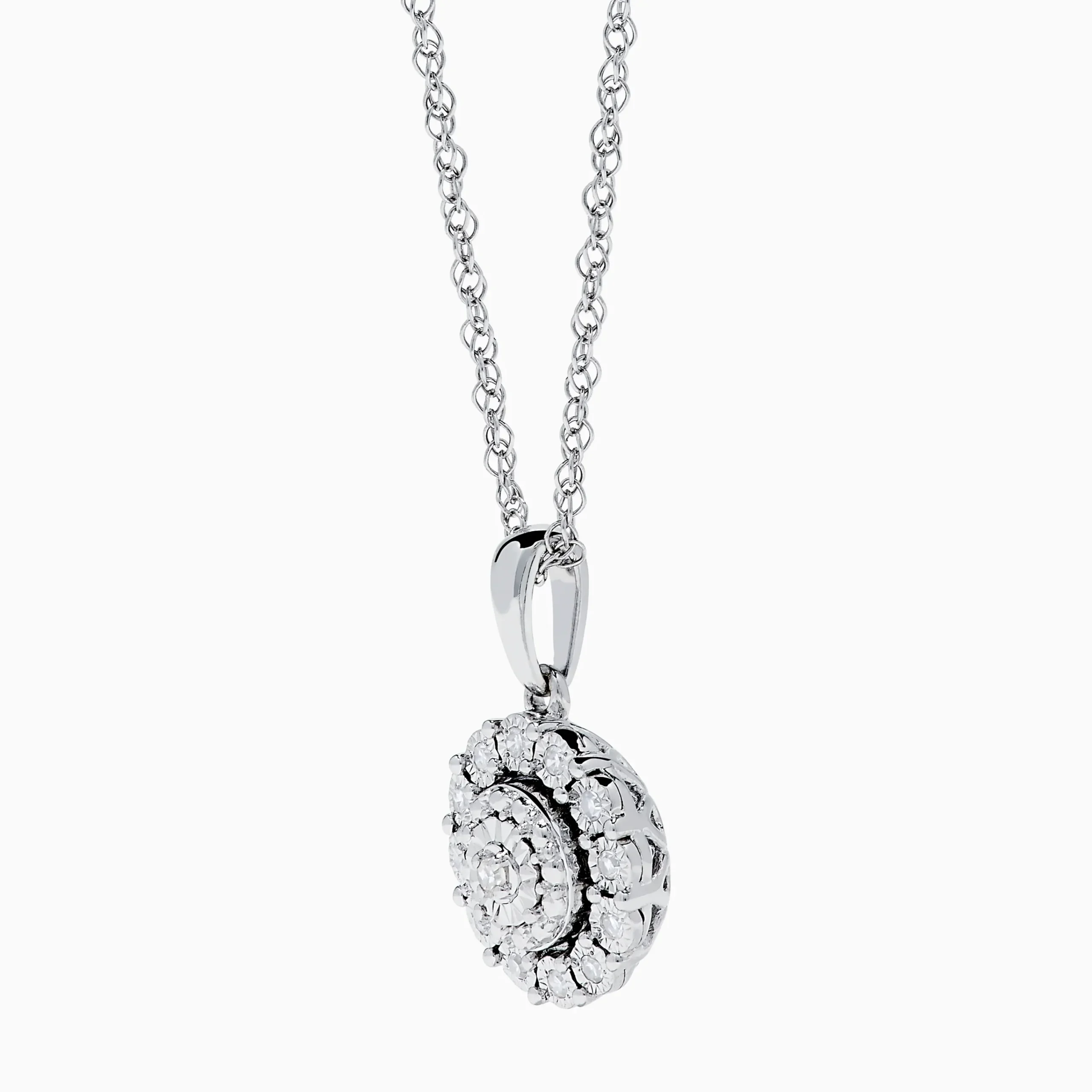 Metal:Sterling Silver Metal Color:WhiteStone: Round Diamond 0.1Sterling Silver Diamond Cluster Pendant