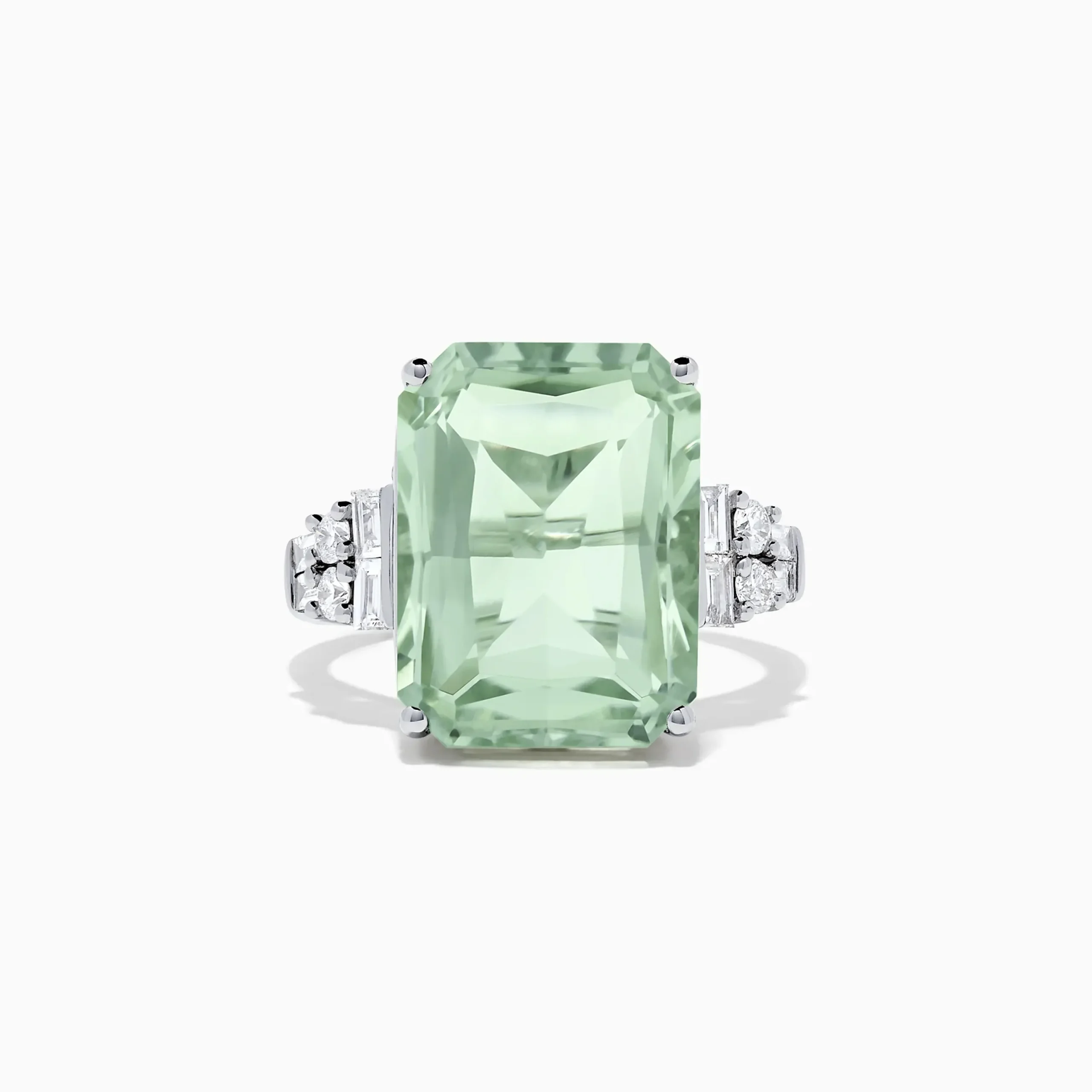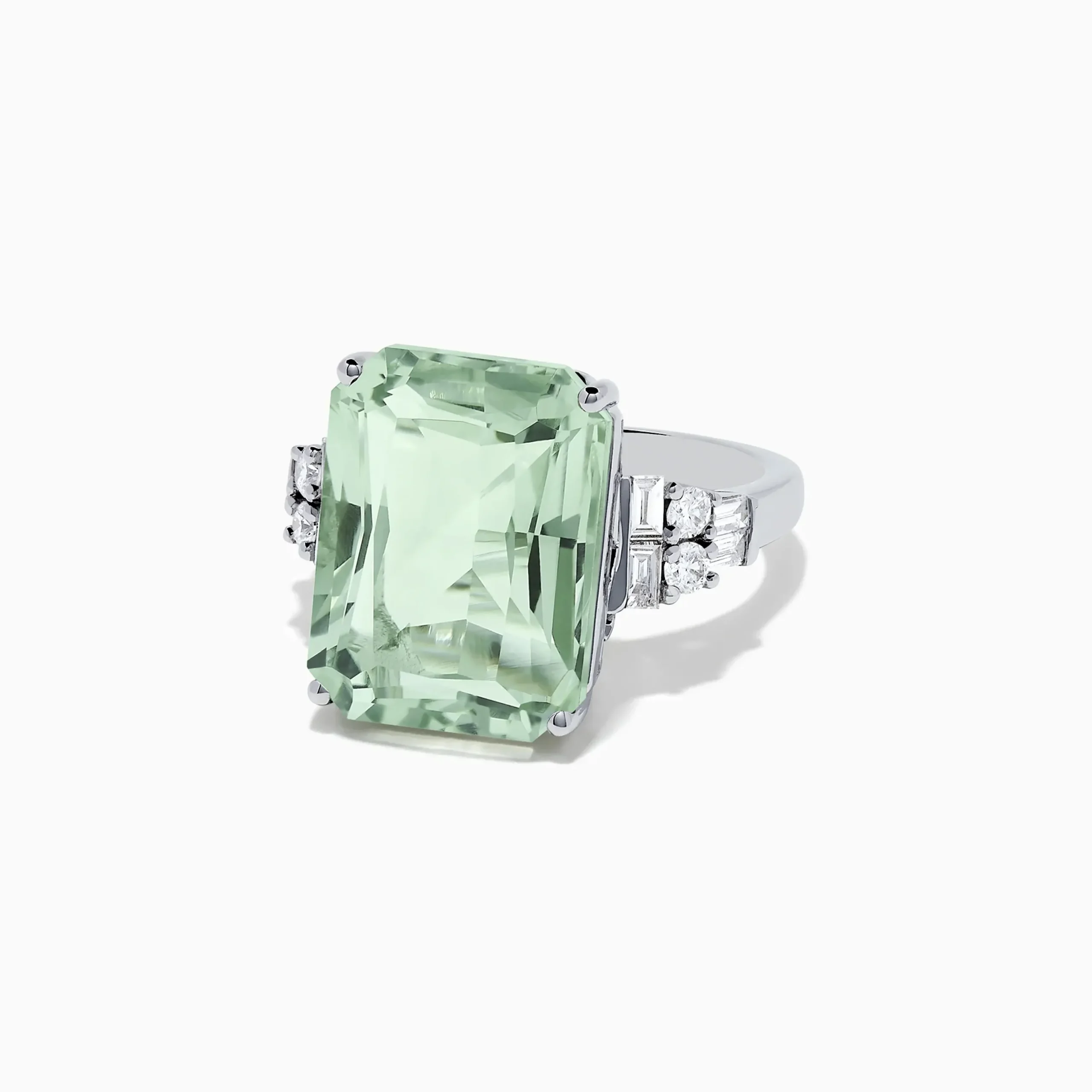 Effy 14K White Gold Green Amethyst and Diamond Cocktail Ring, 11.94 TCW