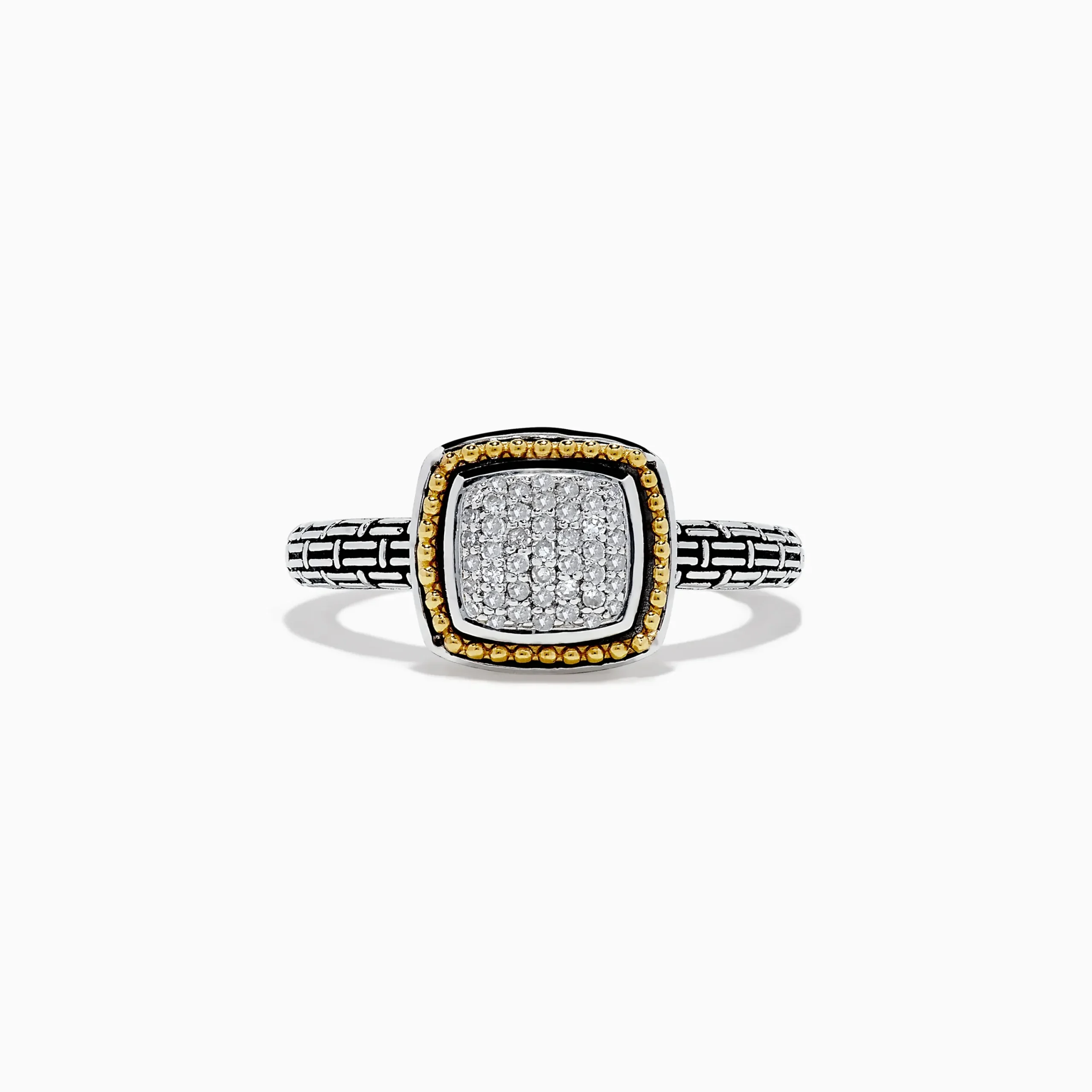 Effy 925 Sterling Silver and 18K Gold Diamond Ring, 0.21 TCW