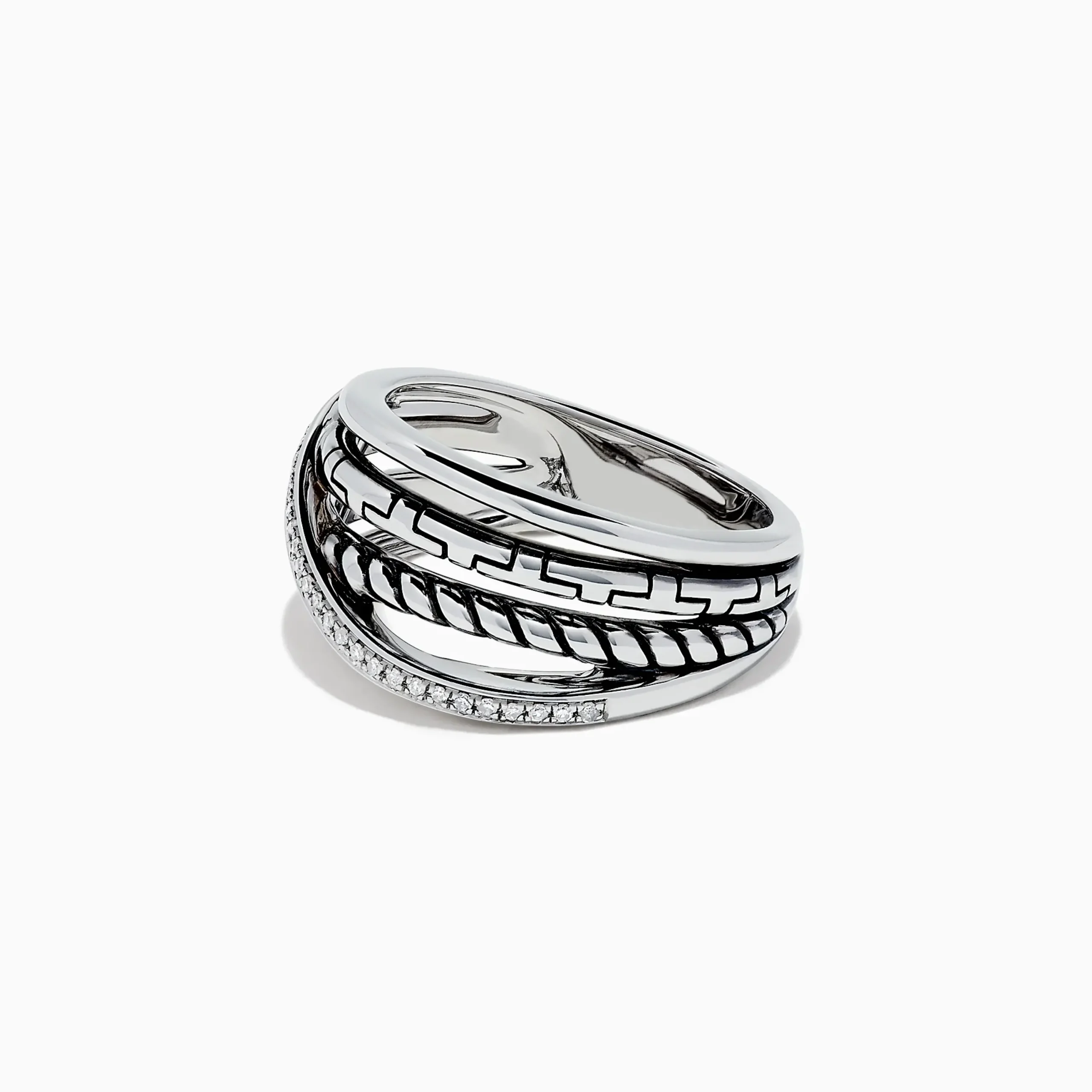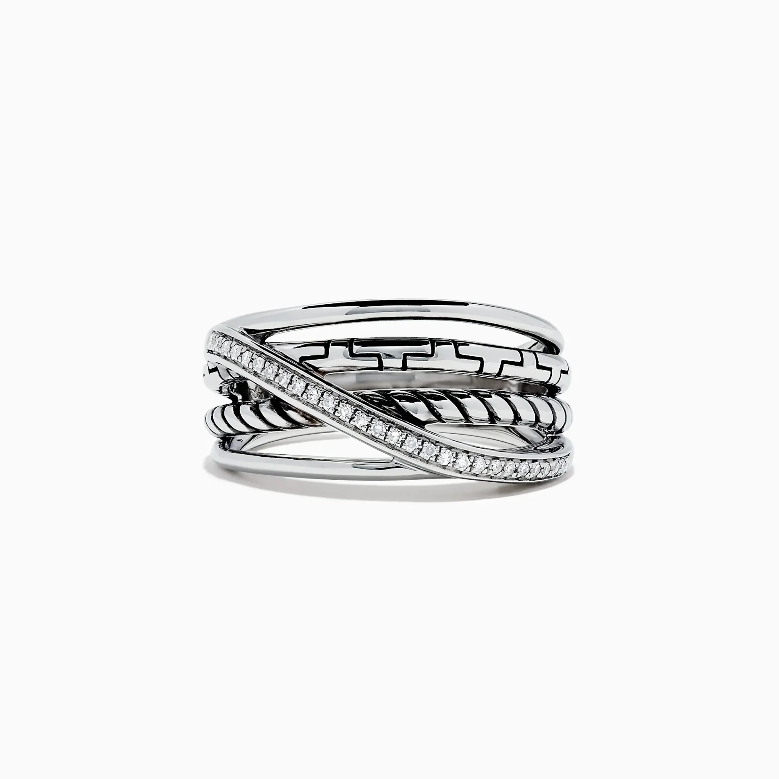 Effy 925 Sterling Silver Diamond Crossover Ring, 0.08 TCW