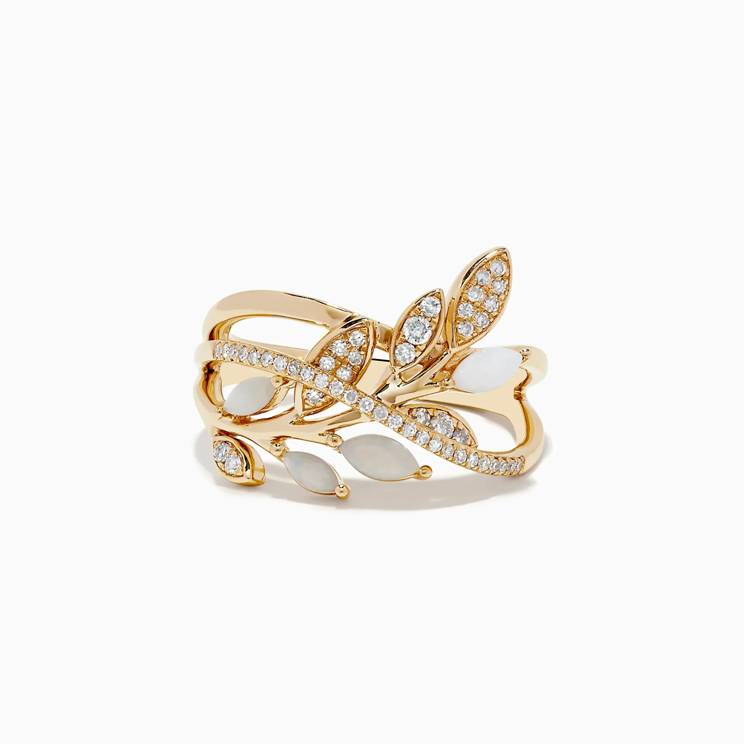 Effy Aurora 14K Yellow Gold Opal and Diamond Leaf Ring