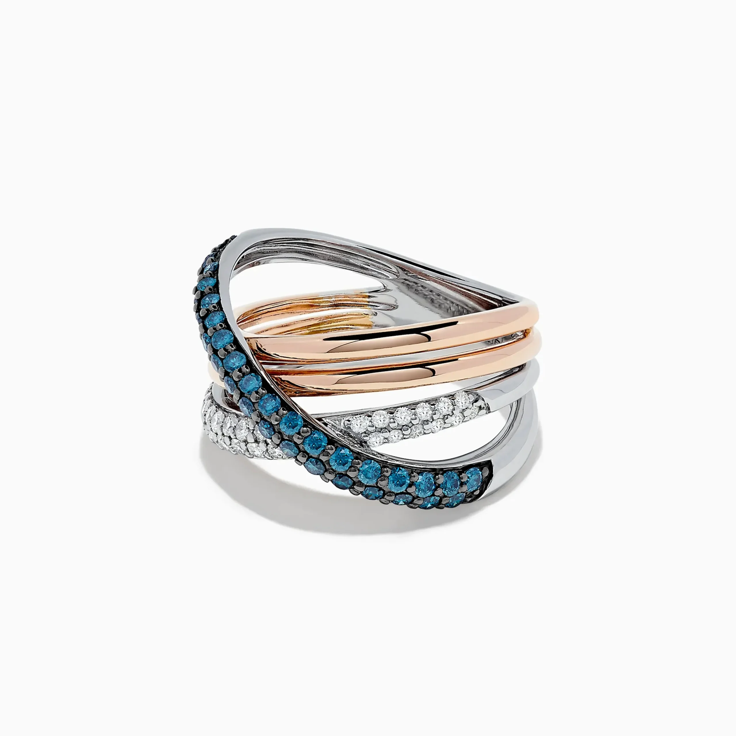 Effy Bella Bleu 14K Two Tone Gold Blue and White Diamond Ring, 0.79 TCW