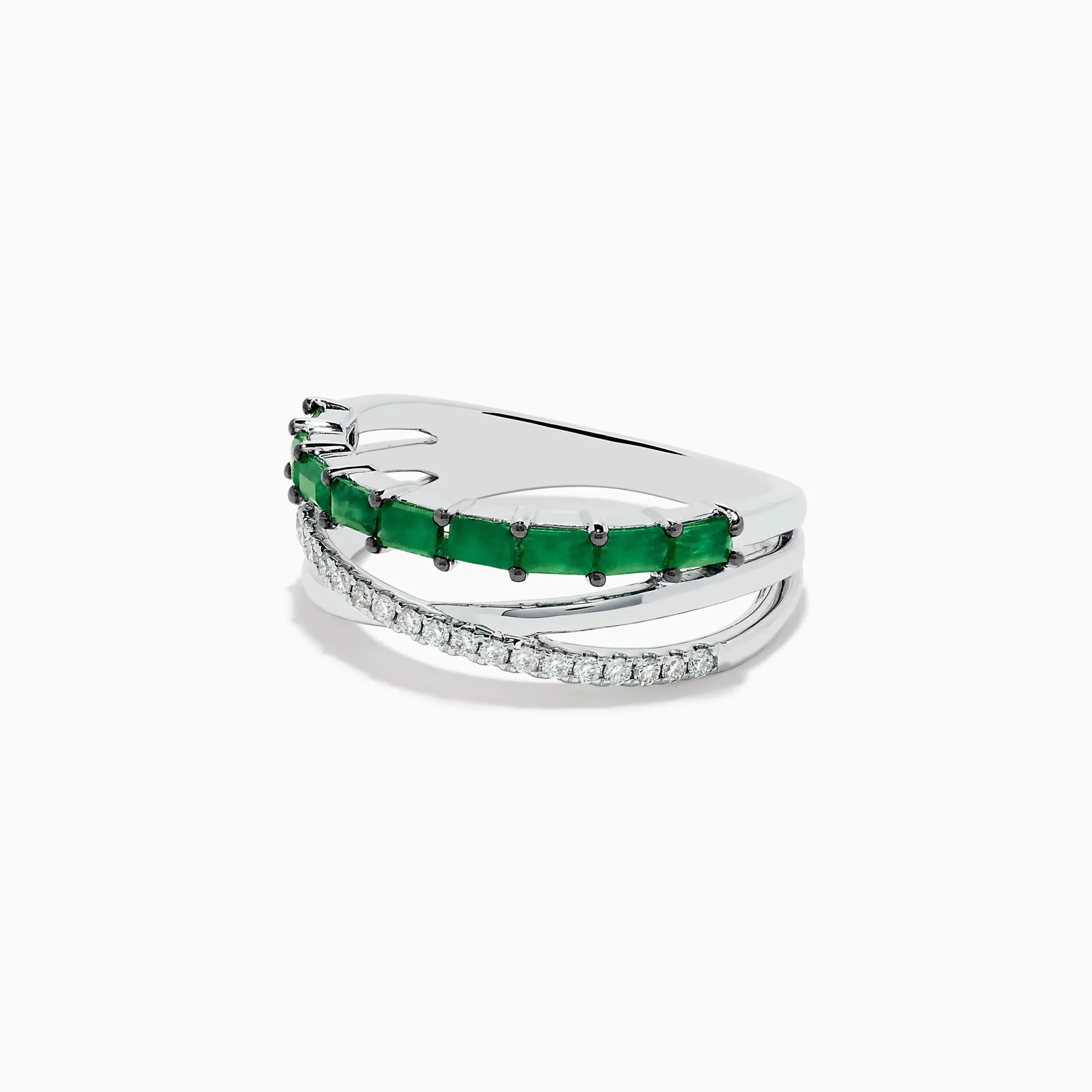 Effy Brasilica 14K White Gold Emerald and Diamond Crossover Ring
