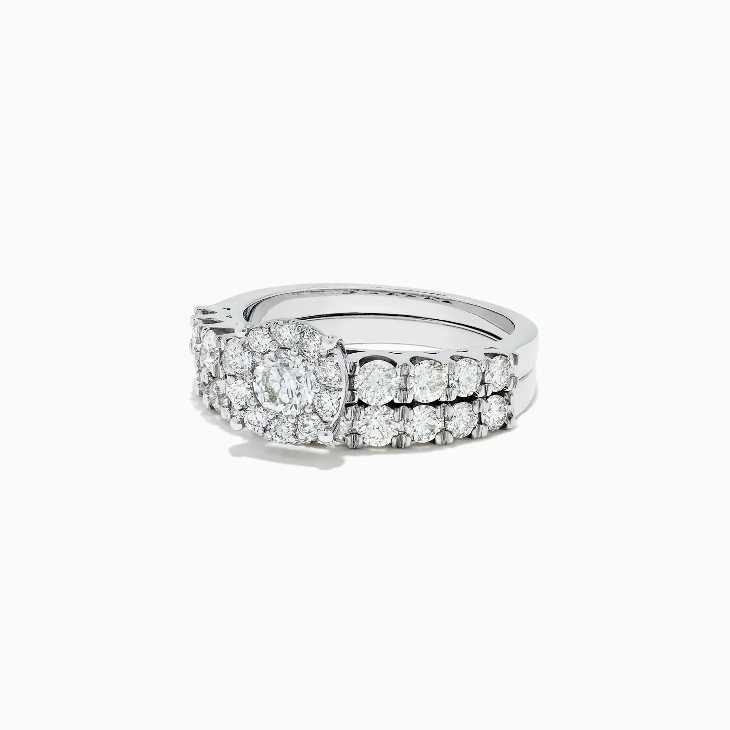 Effy Bridal 14K White Gold Diamond Cluster Ring and Band Set, 1.77 TCW