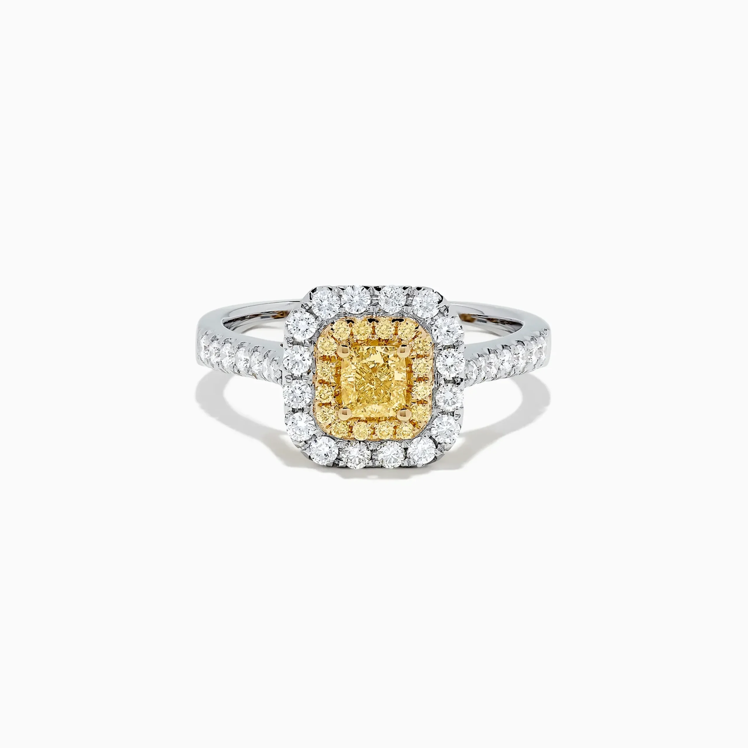 Effy Canare 18K Two Tone Gold Cushion Double Halo Yellow Diamond Ring, 0.97 TCW