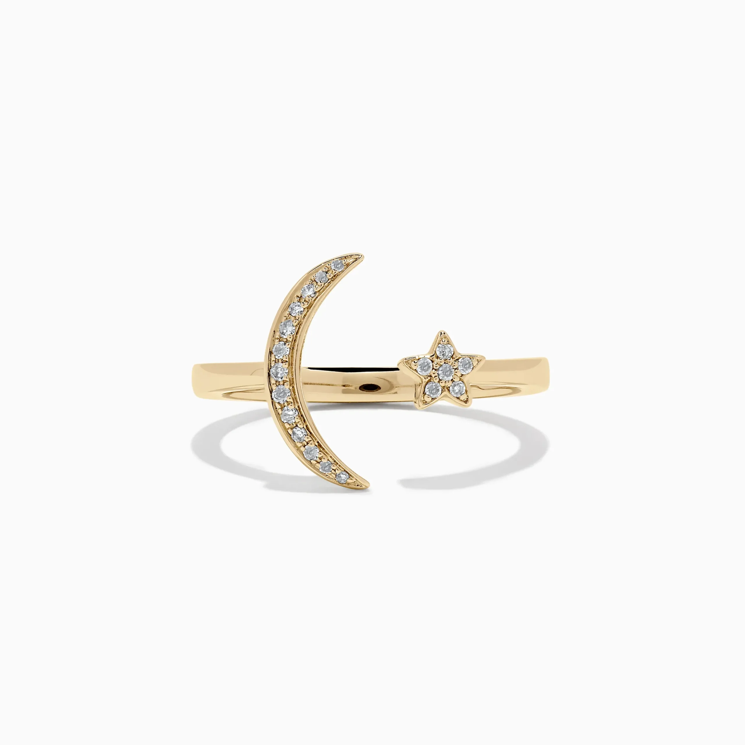 Effy Novelty 14K Yellow Gold Diamond Moon and Star Ring, 0.08 TCW