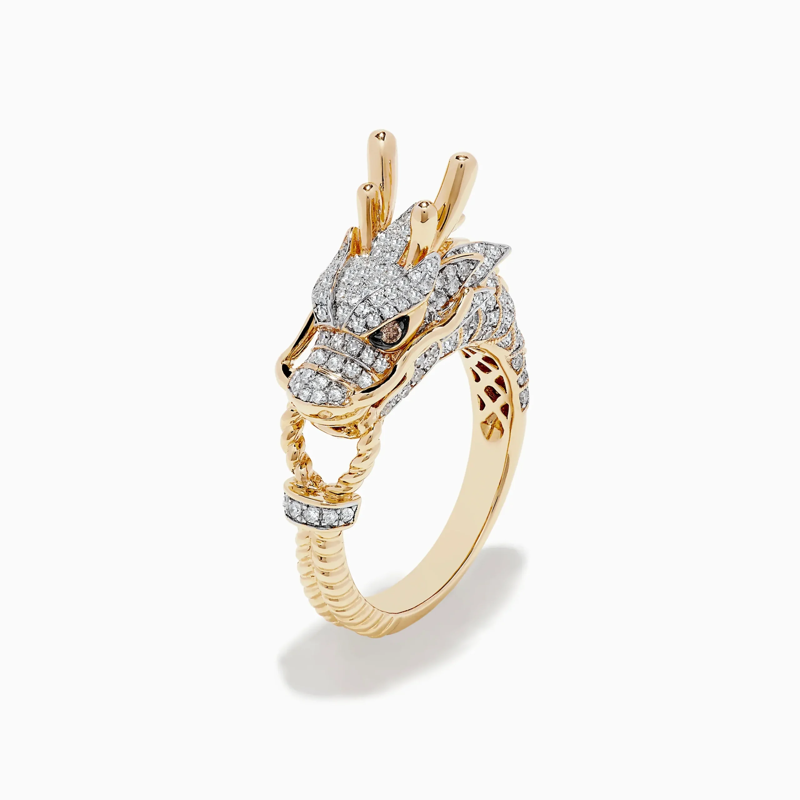 Effy Safari 14K Yellow Gold Espresso and White Diamond Dragon Ring