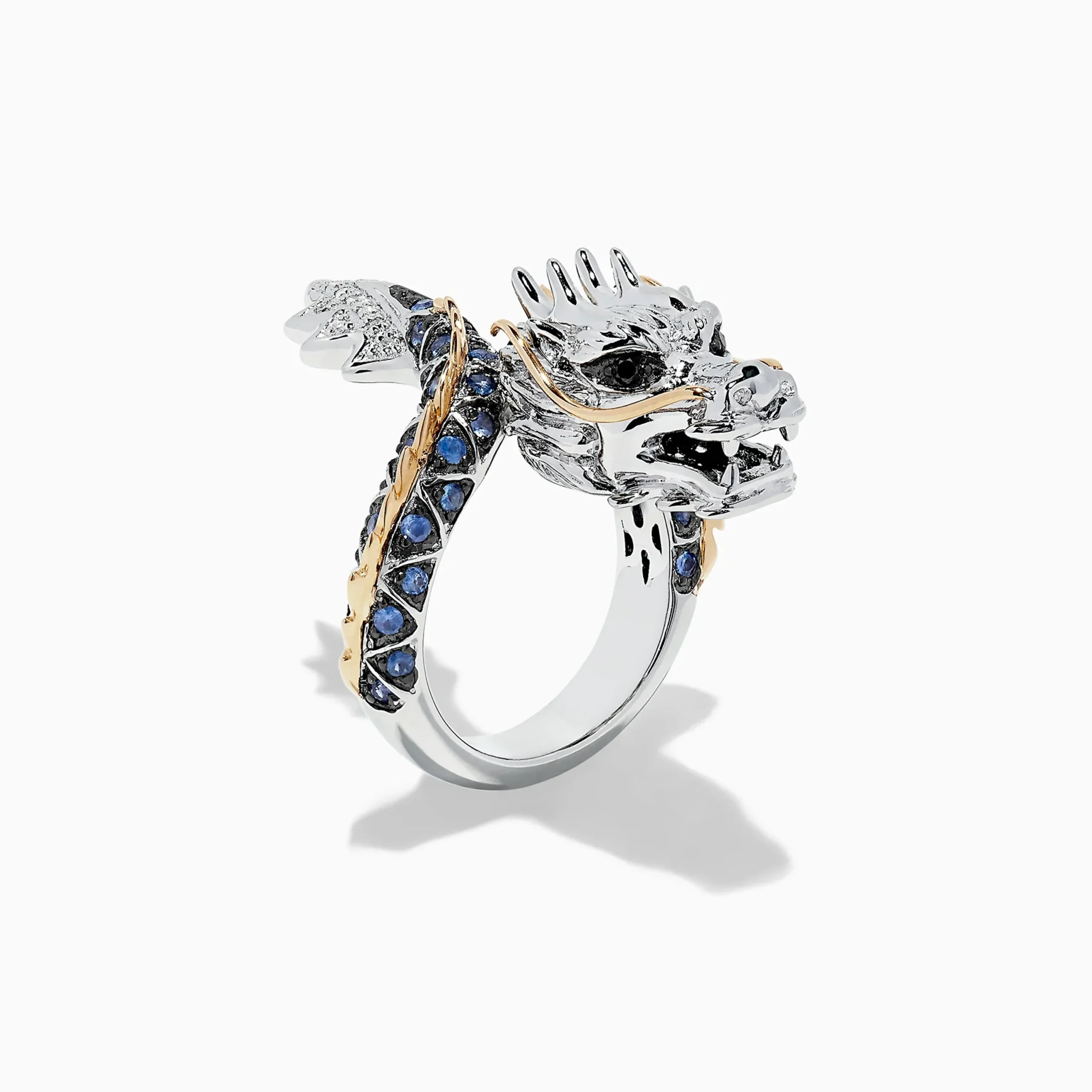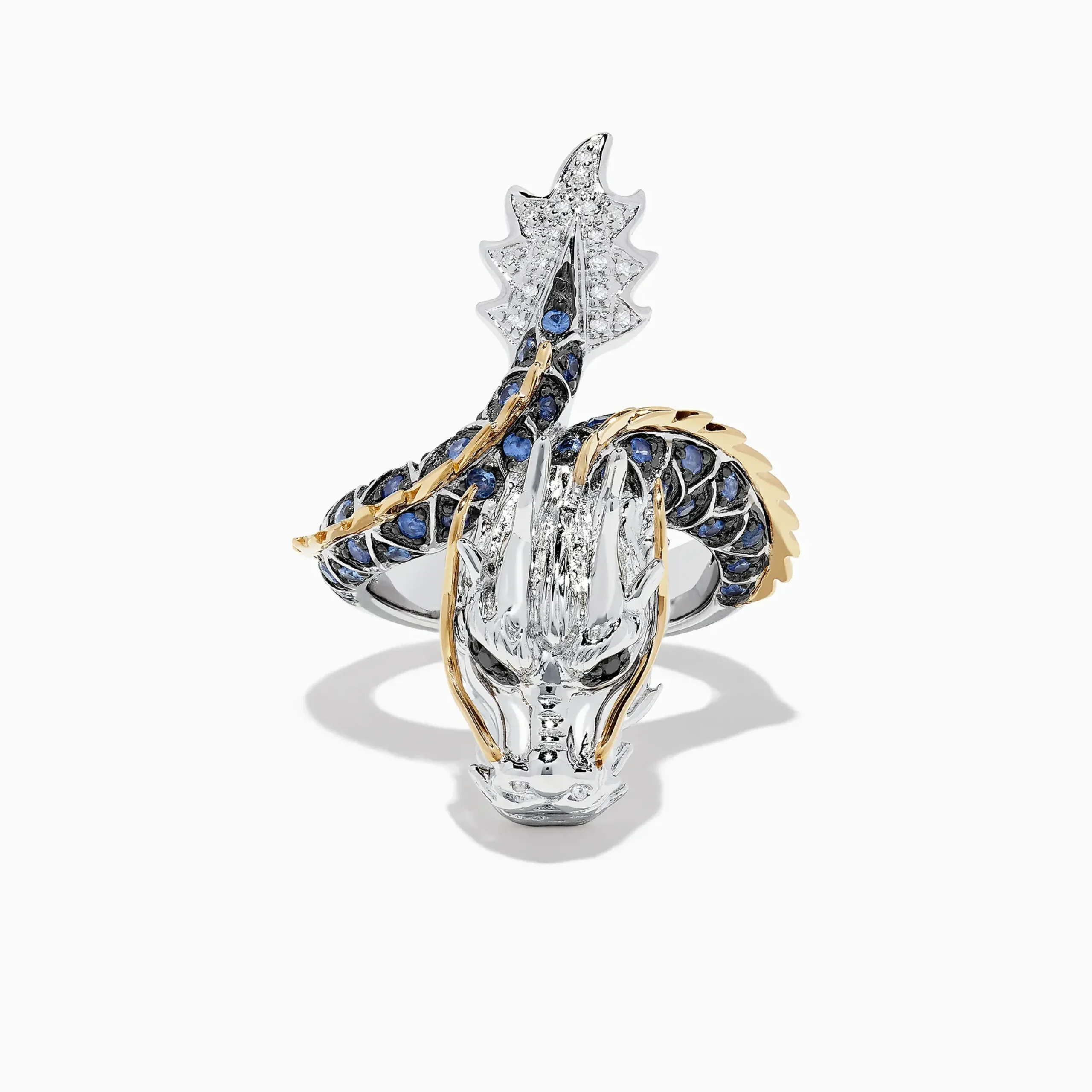 Effy Safari Sterling Silver and 14K Gold Sapphire Dragon Ring, 0.79 TCW