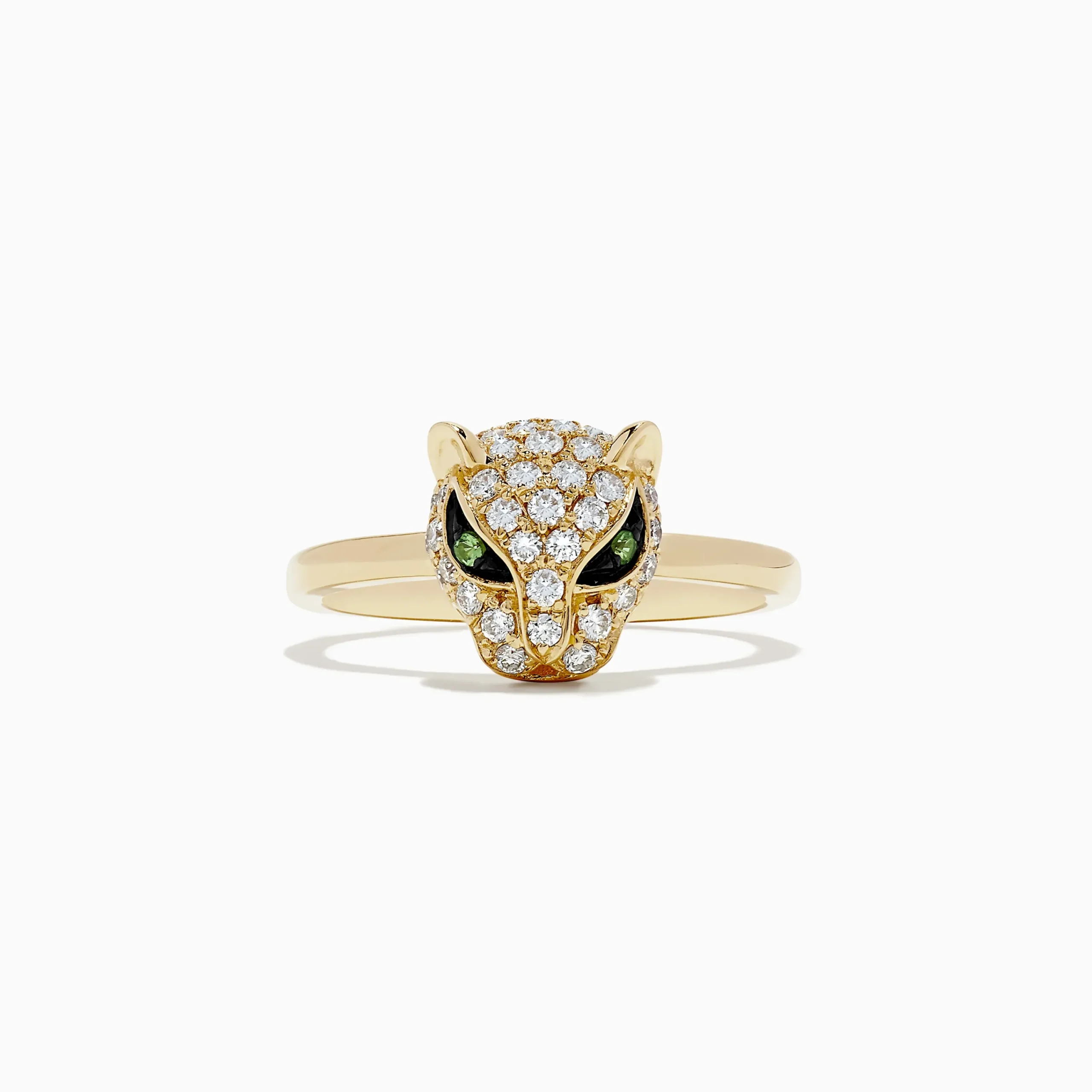 Effy Signature 14K Yellow Gold Diamond and Tsavorite Panther Ring, 0.47 TCW
